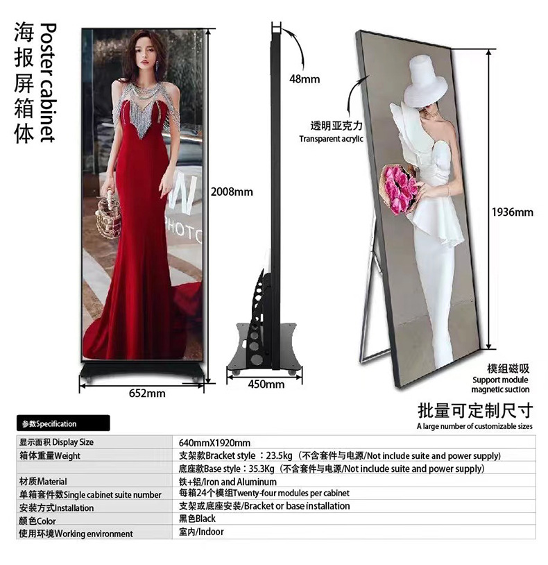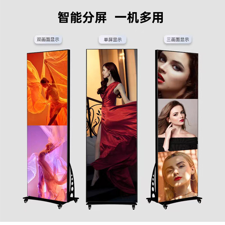 Layar poster elektronik, layar cermin dalam ruangan, penyambungan multi-layar desktop yang dapat dilipat, layar iklan LED vertikal untuk pernikahan
