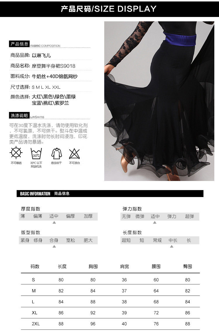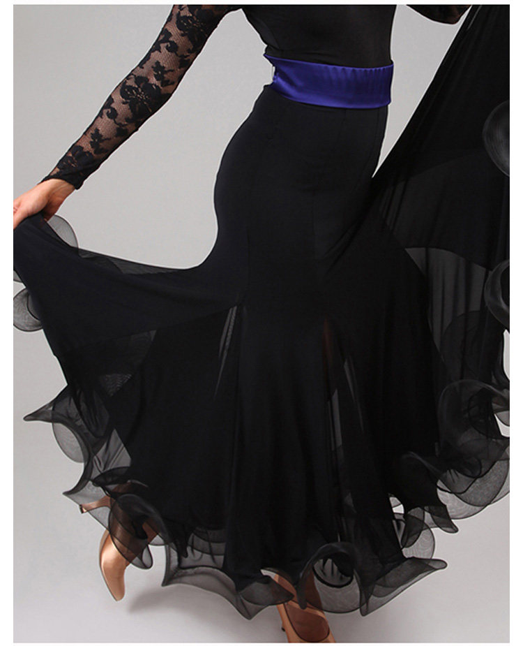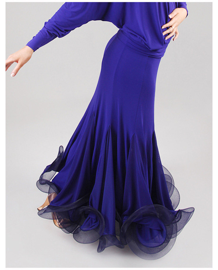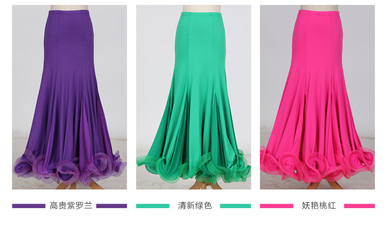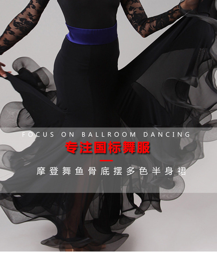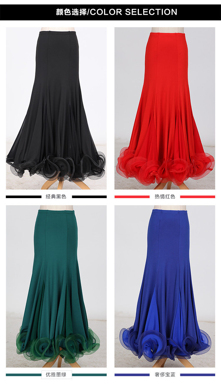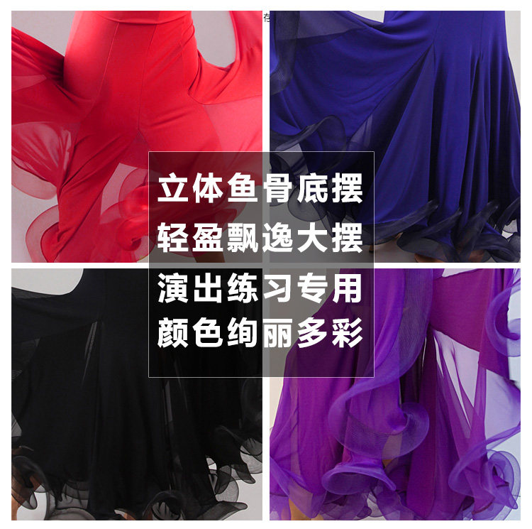 Rok latihan dansa, Fishbone curling, rok latihan tari modern S9018, Rok dansa standar nasional, rok ayun setengah panjang