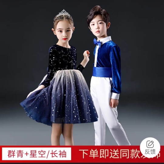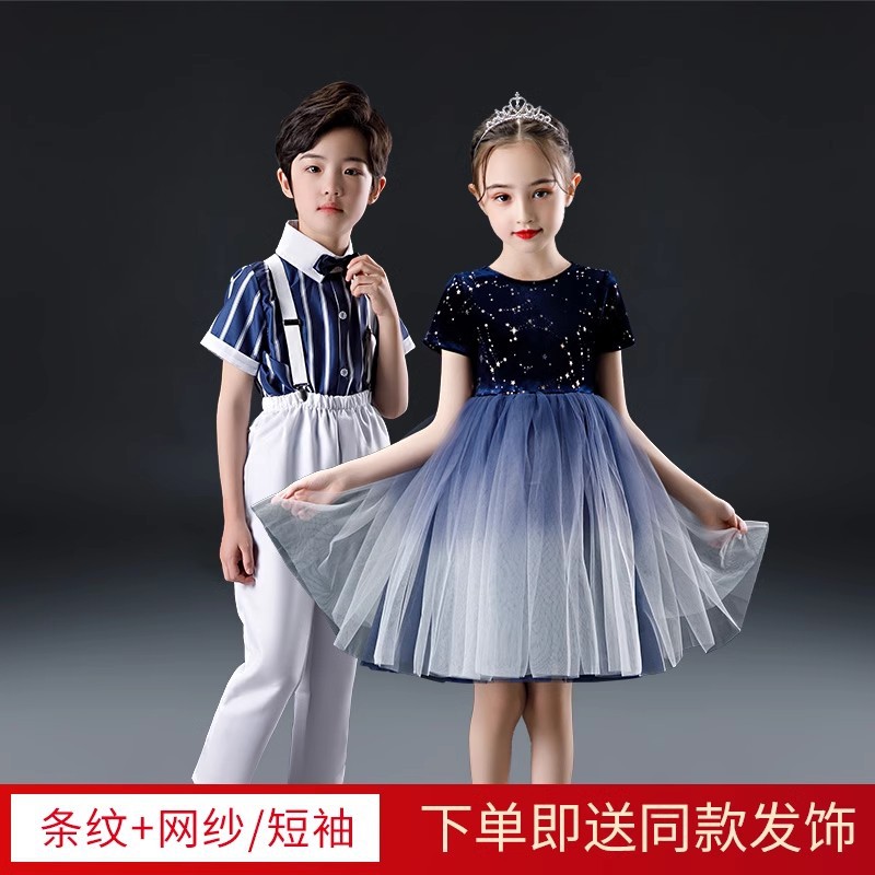 Gaun pertunjukan kostum Chorus anak-anak rok tari anak perempuan Paduan Suara siswa sekolah dasar gaun kafan pria kostum penampilan 61