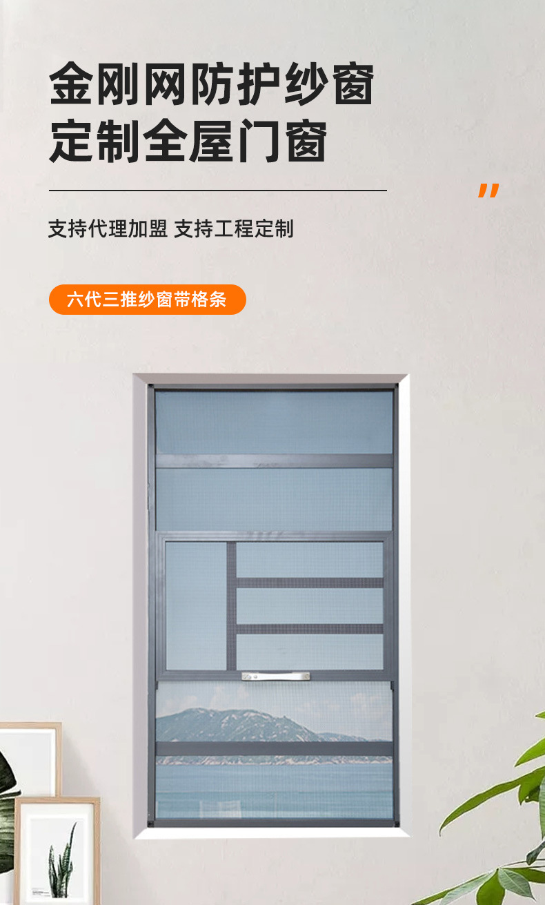 Pasokan pabrik jaring berlian jendela layar tiga dorong anti-nyamuk generasi enam jendela layar tekan dengan kisi anti-maling jendela layar aluminium
