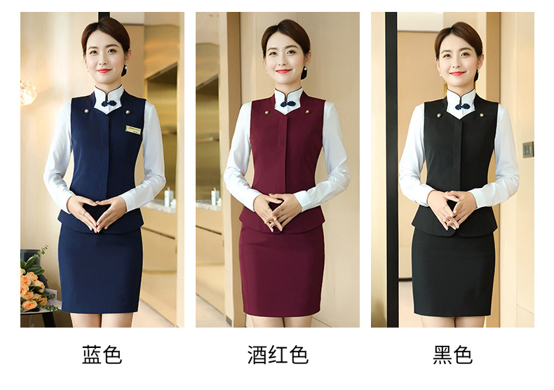Setelan rompi profesional baju pramugari wanita lengan pendek baju kerja pelayan kasir kecantikan pakaian kerja meja depan hotel