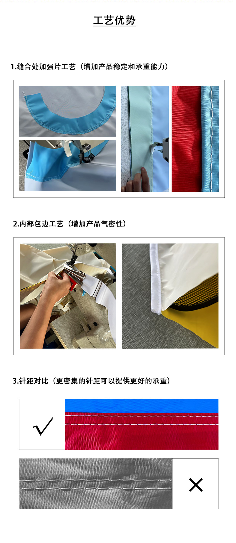 公司占地面积8000多平方米,拥有3个条缝纫完整生产线,以及90多名经验丰富的生产技术人员,可满足多款式同时生产,实现灵活交货。拥有76台生产设备,日产量可达200件。多年来一直致力于培养行业专业人才。拥有专业质检团队3名,每道环节生产过程严格执行质检标准,质检流程完善,良品率高达99%。此外我们还拥有一系列先进的设备,如电脑花样缝纫机、空气压力测试仪等。