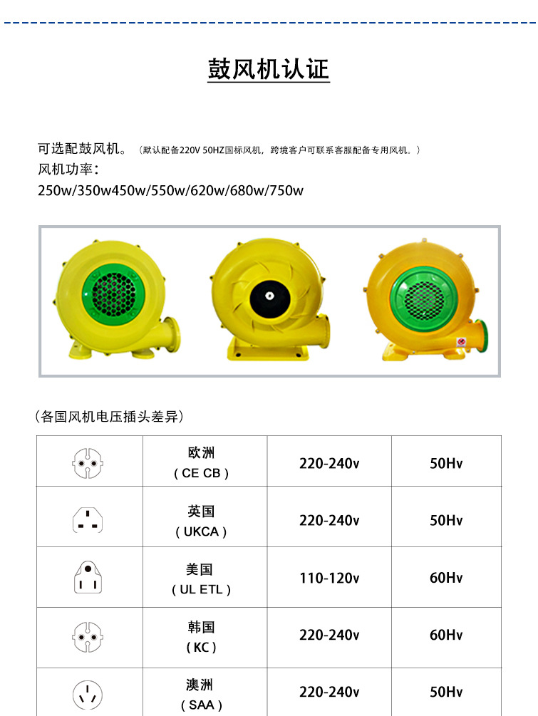 包装中包括鼓风机、收纳袋、修补片和地钉。