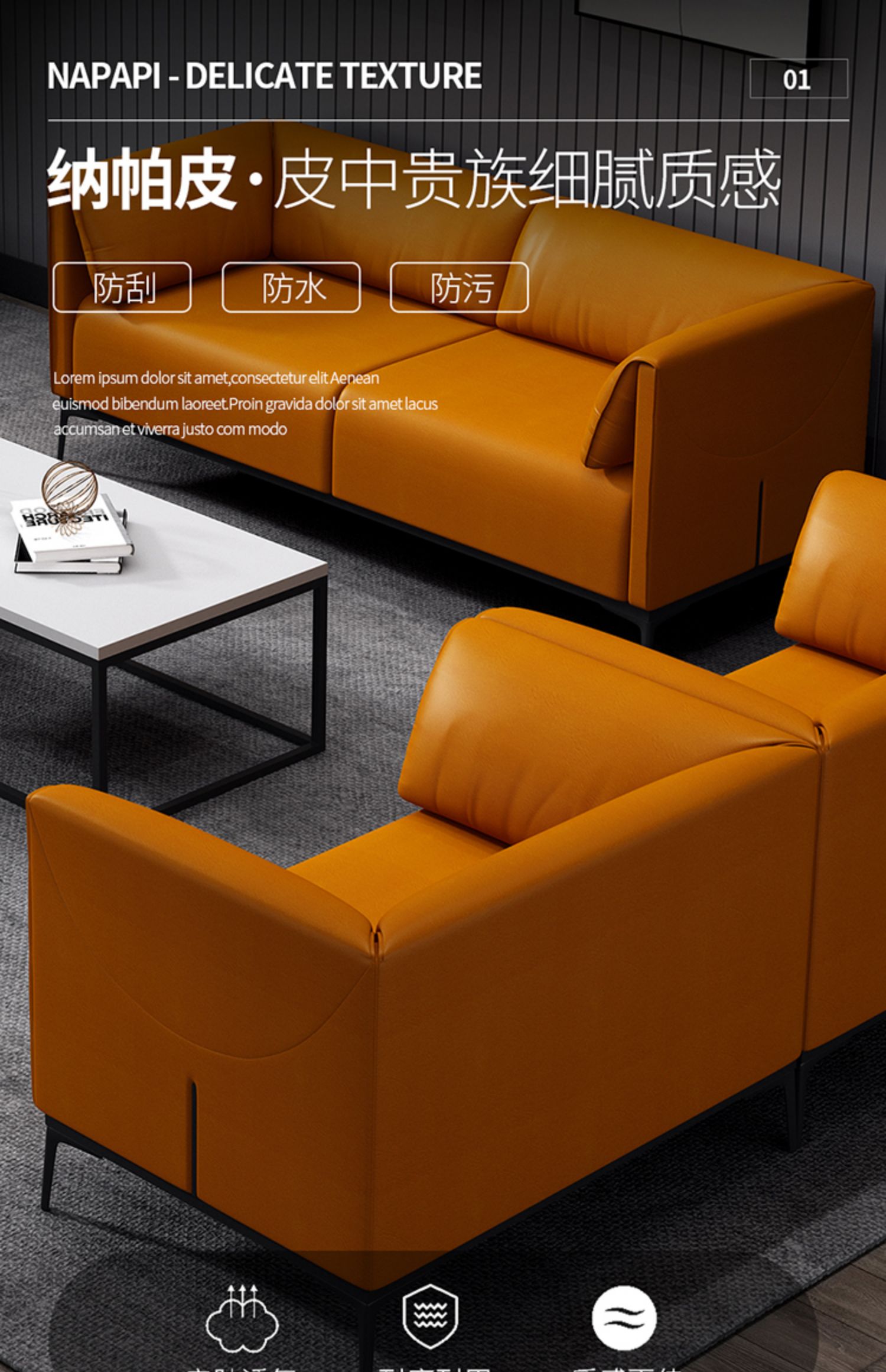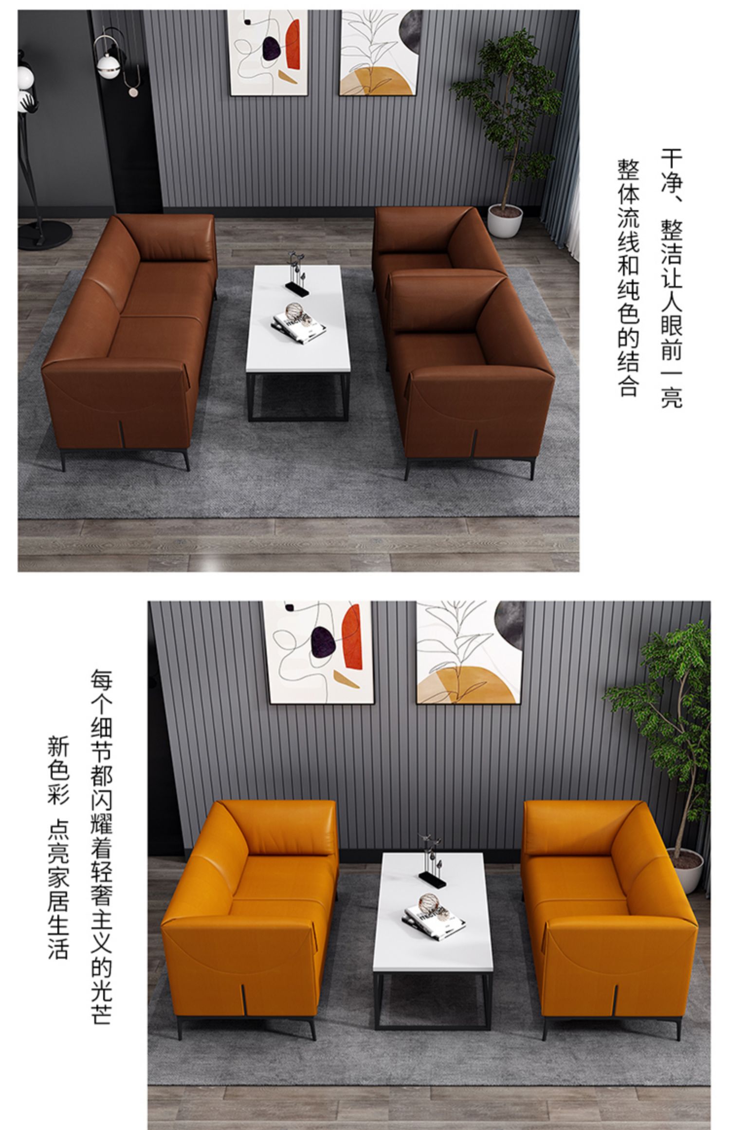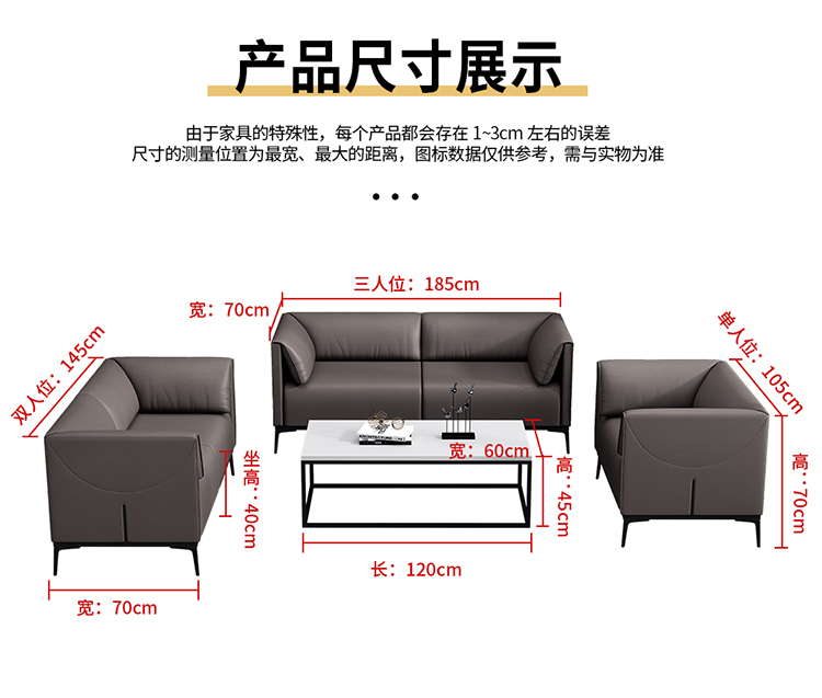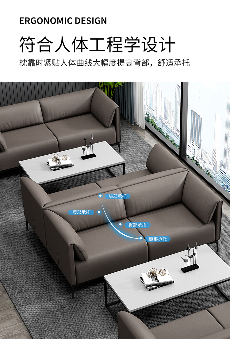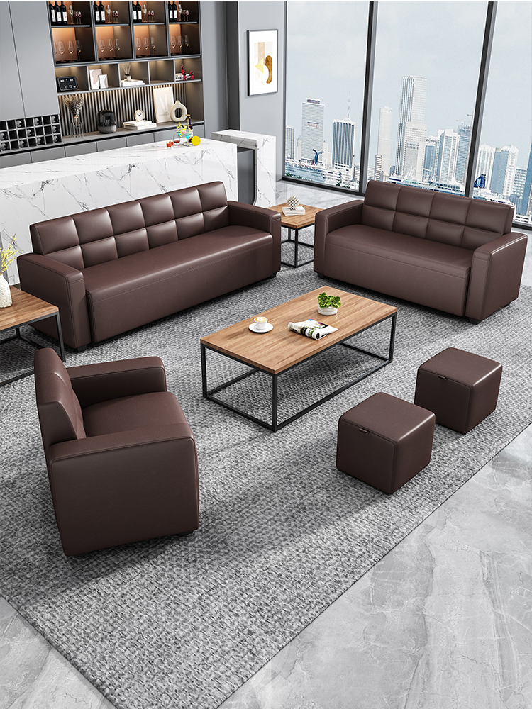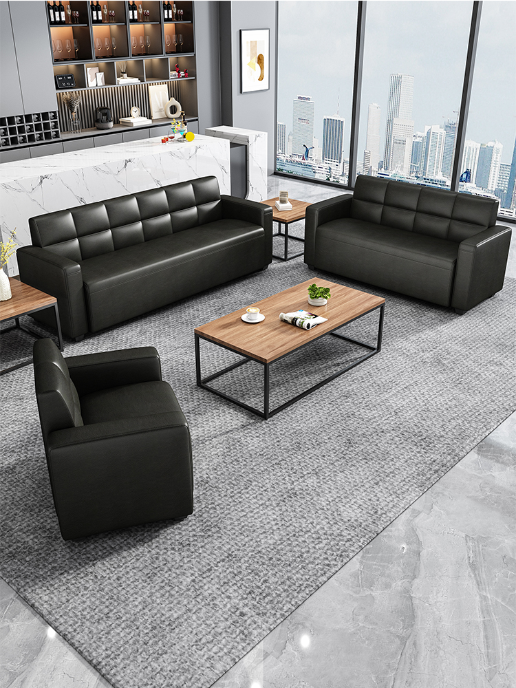 Sofa negosiasi kantor meja kopi sederhana modern hall menunggu Area sandaran tunggal ganda tiga kursi abu-abu