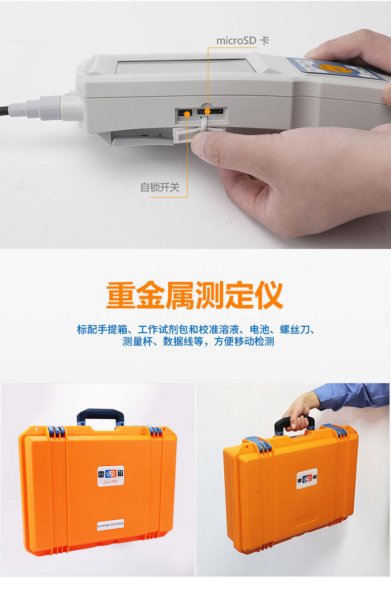 Detektor logam berat portabel Shanghai Leici SJB-801 untuk kromium/tembaga/merkuri/mangan/nikel, analis ion logam berat