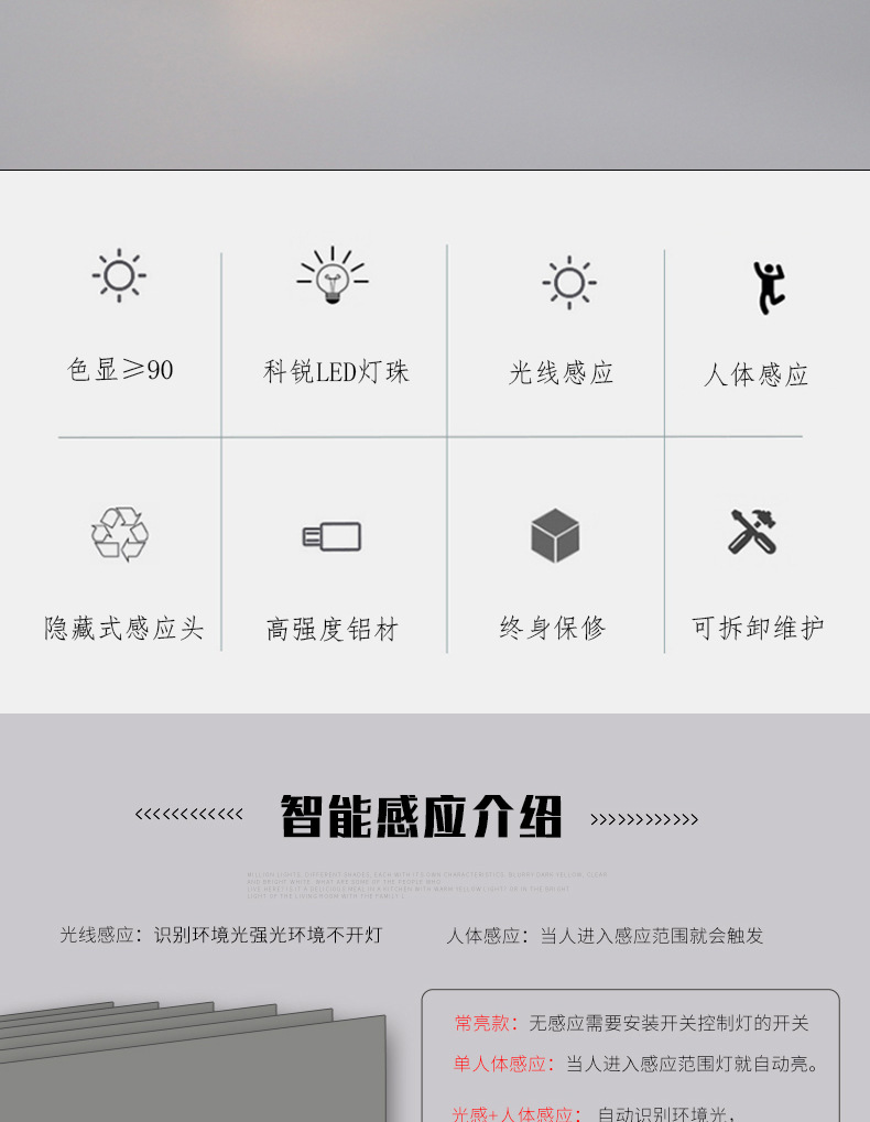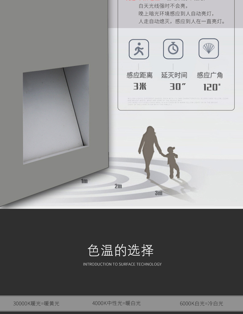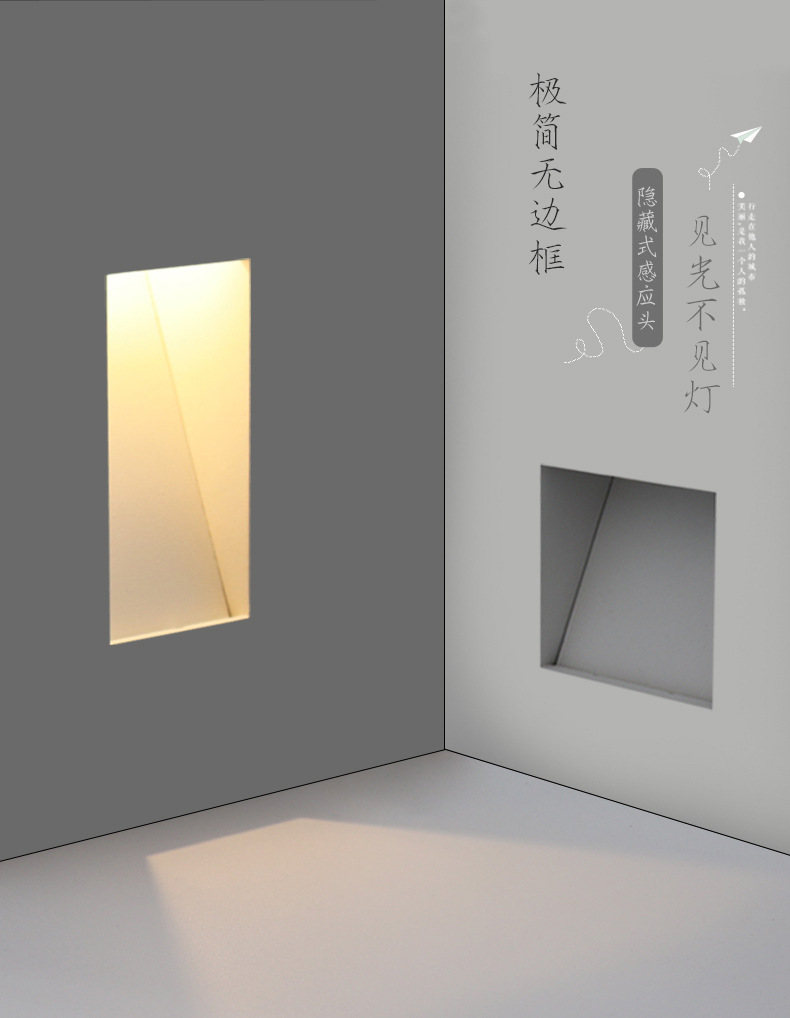 Lampu lantai tanam tanpa bingkai panjang, lampu langkah tangga dalam ruangan tas induksi tubuh manusia kontrol ganda