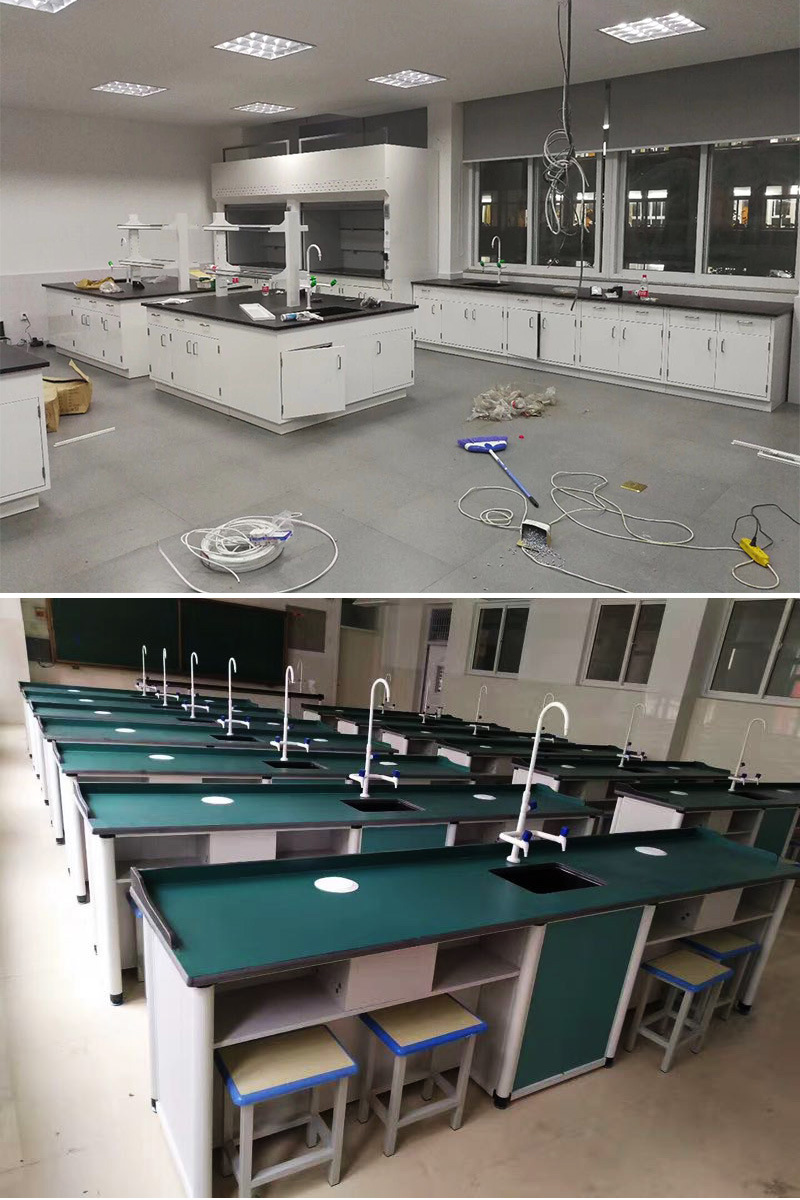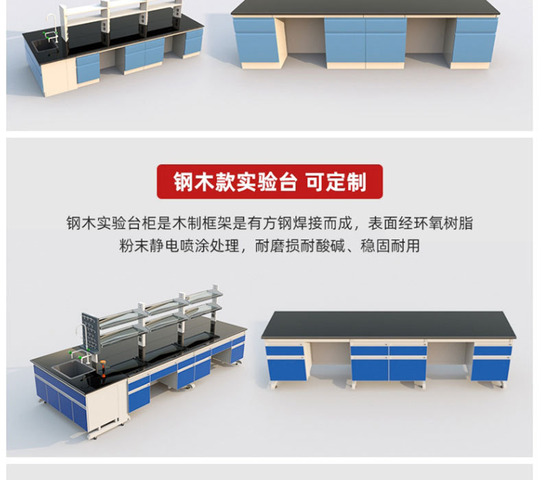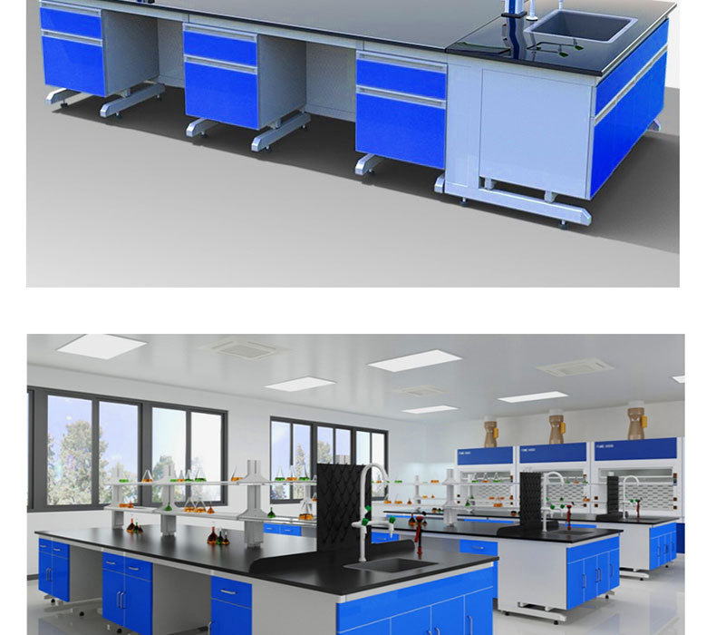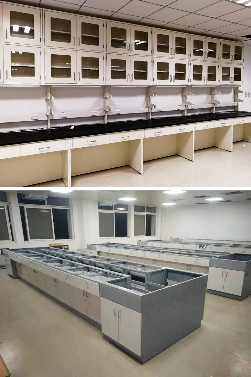 Meja kerja bangku tes kayu dan baja laboratorium bangku tes semua baja meja operasi laboratorium panel samping bangku Tengah