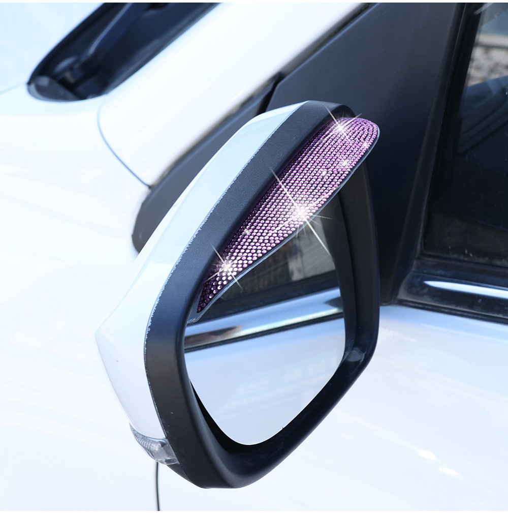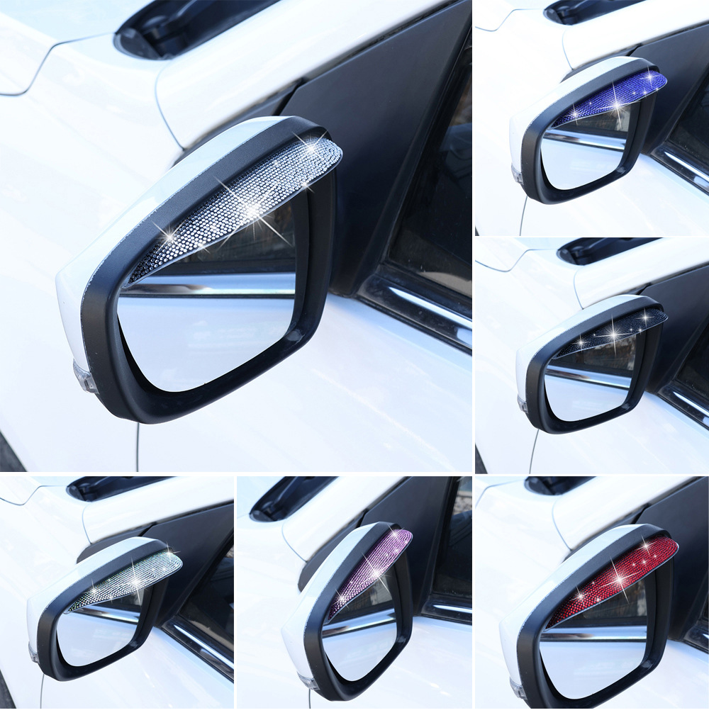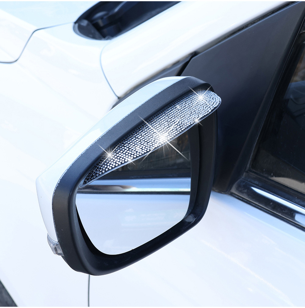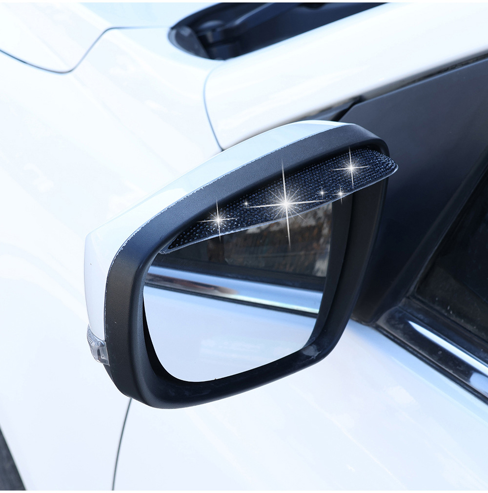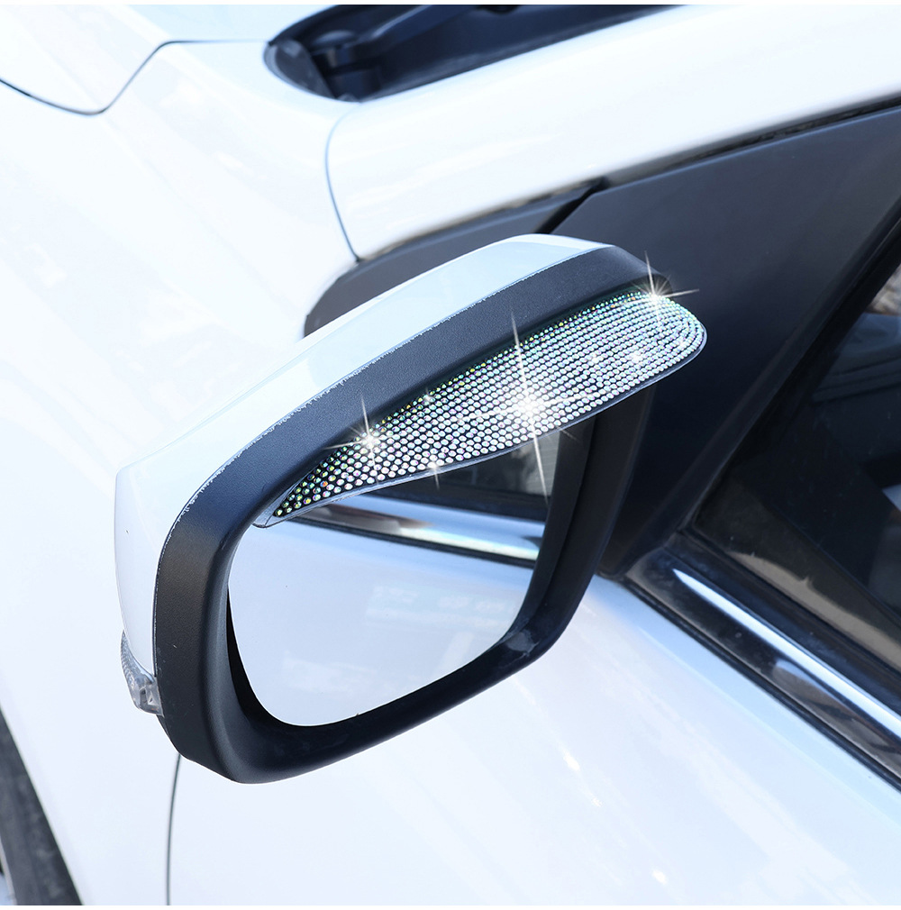 1 pasang kaca spion alis hujan tanam berlian lintas batas dengan kaca spion mobil dekorasi berlian anti-hujan perisai hujan reflektif