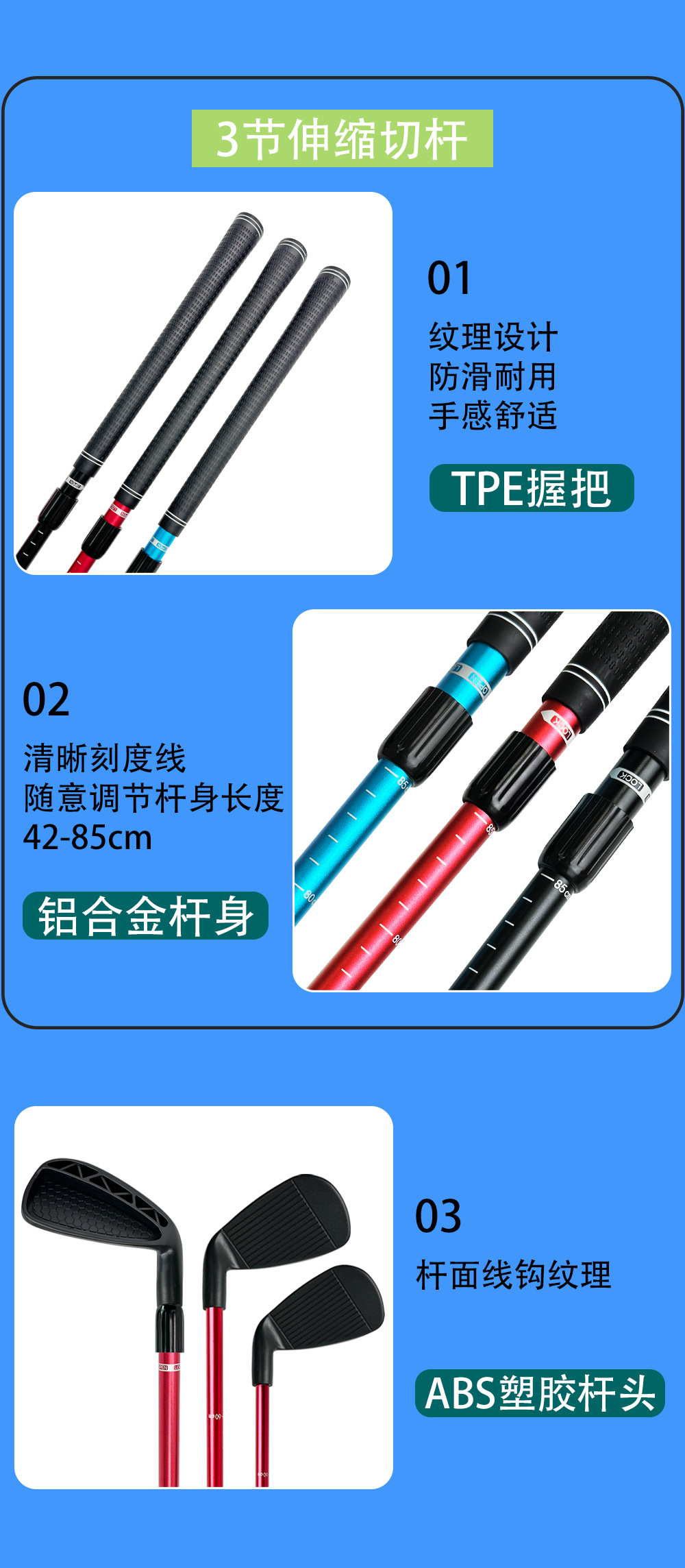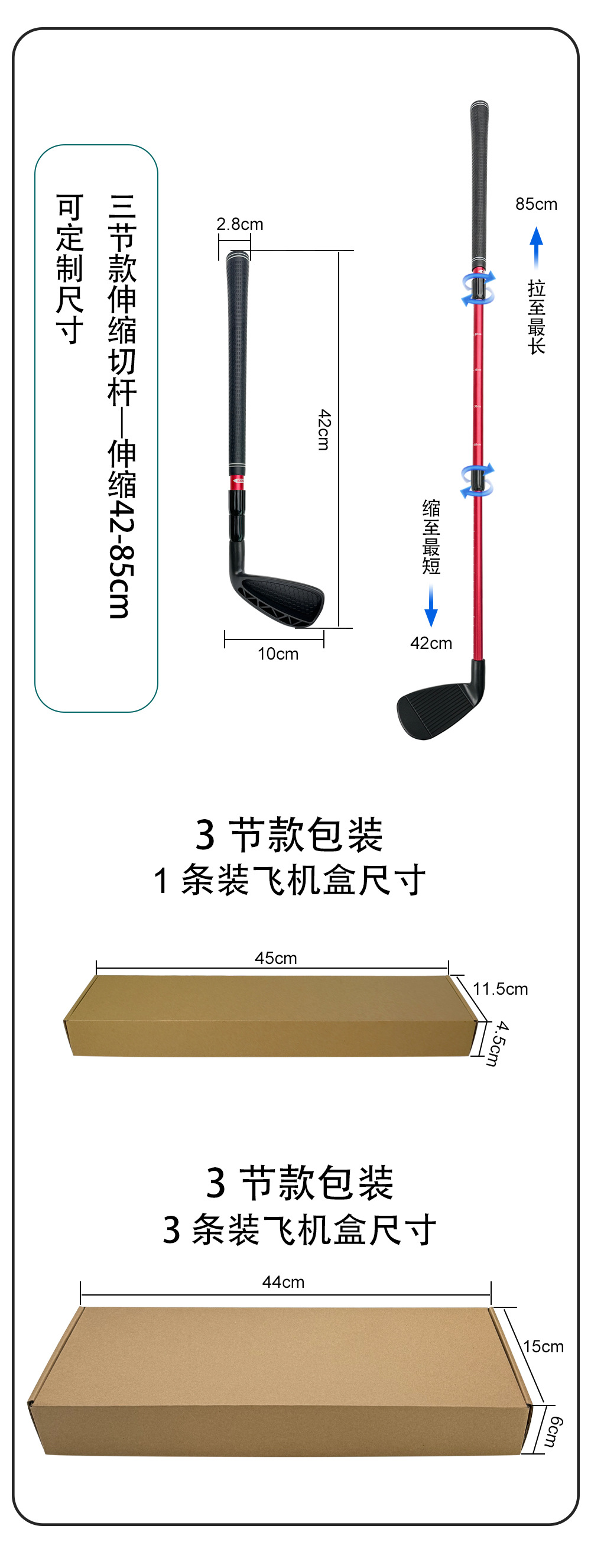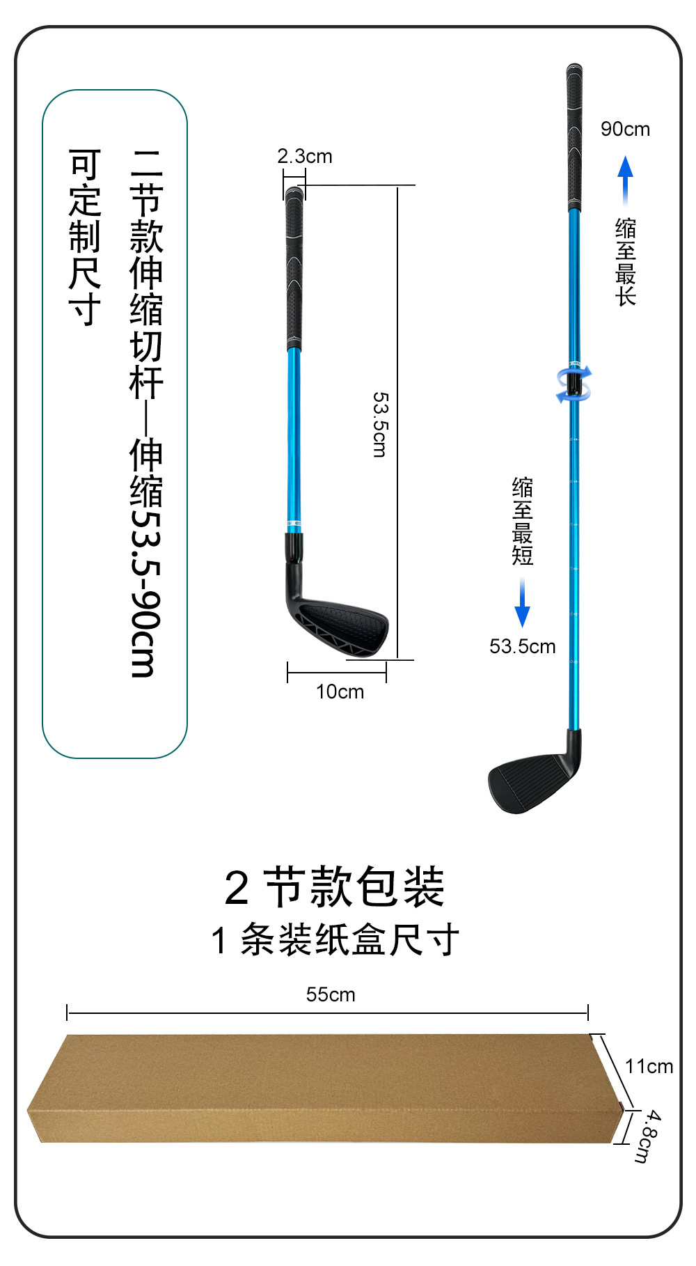 2 Bagian Batang Pemotong Golf Batang Pemotong Latihan Panjang Yang Dapat Disesuaikan Panjang Lamanya Tongkat Latihan Golf