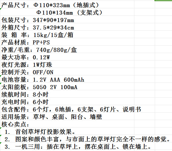 Lampu proyeksi tenaga surya lintas batas, lampu dekorasi panel surya baru pasang Dinding halaman rumput ganda tujuan ganda tahan air luar ruangan