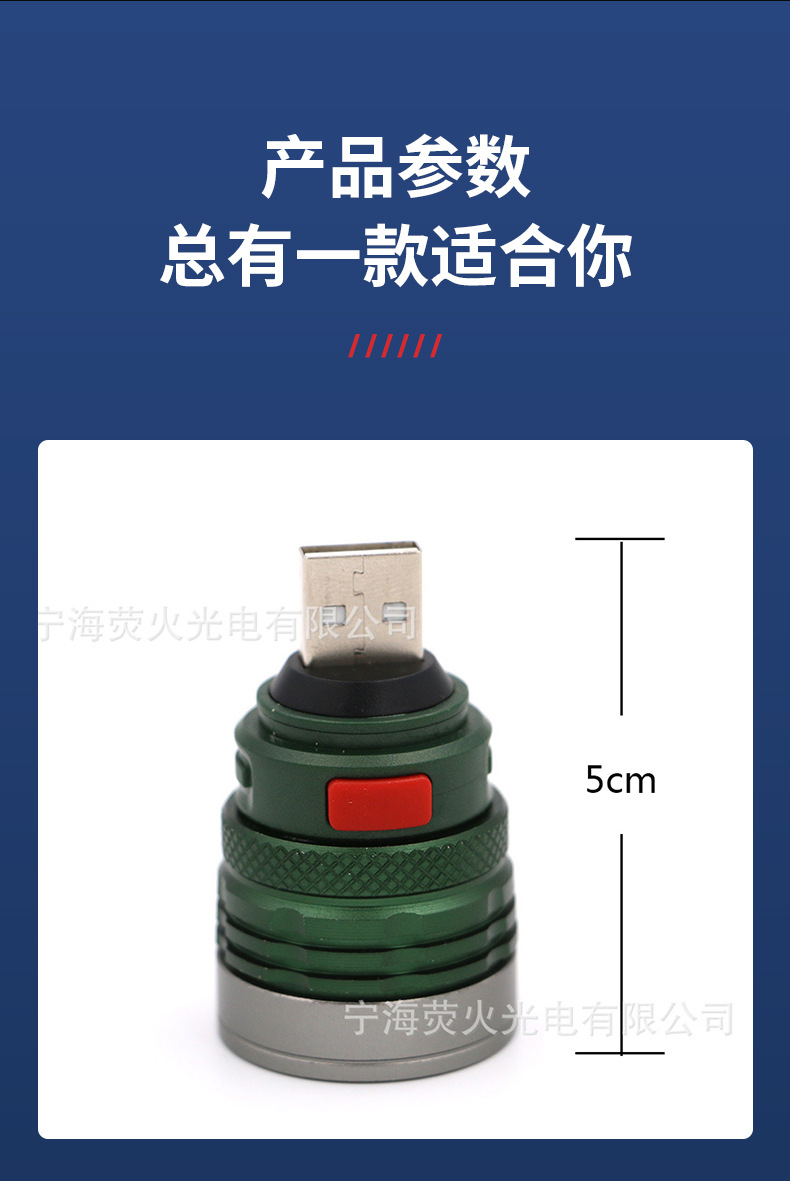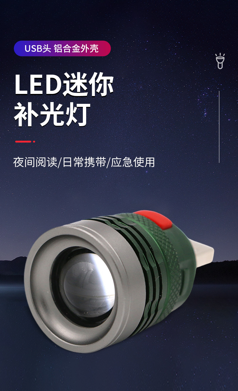 Lampu senter LED kepala USB mini, cahaya mengisi aluminium Aloi kuat membaca perdagangan luar negeri
