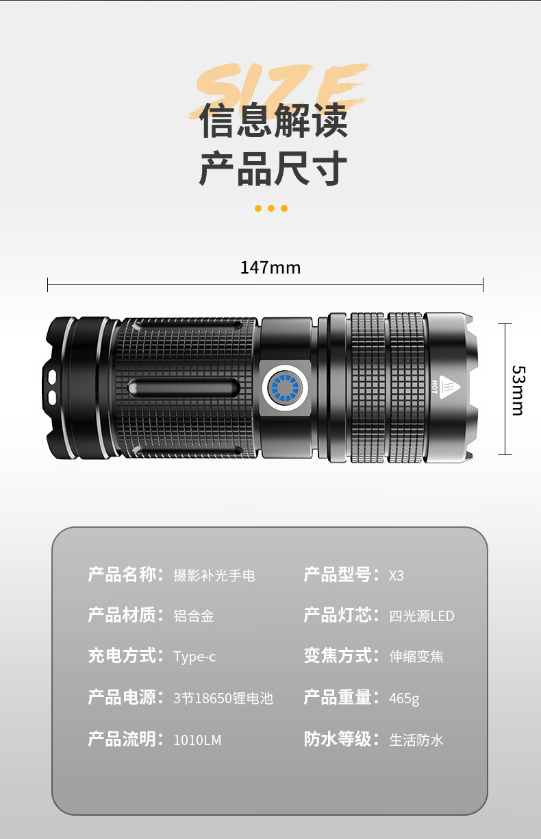 6.公司手电筒具有生活防水能力,一般雨淋不会出现问题,但不具备潜水功能,请勿携带此手电筒潜水或长时间放在水盆,浴缸里;