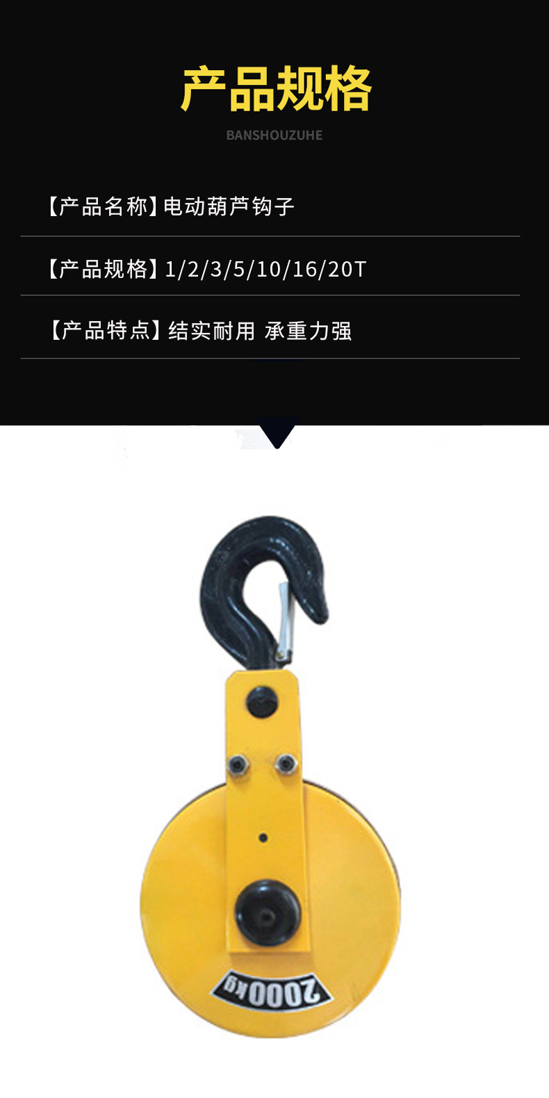 Kait derek kekuatan tinggi dan tahan berat multi-spesifikasi 1t2t3t crane gantry crane hook listrik