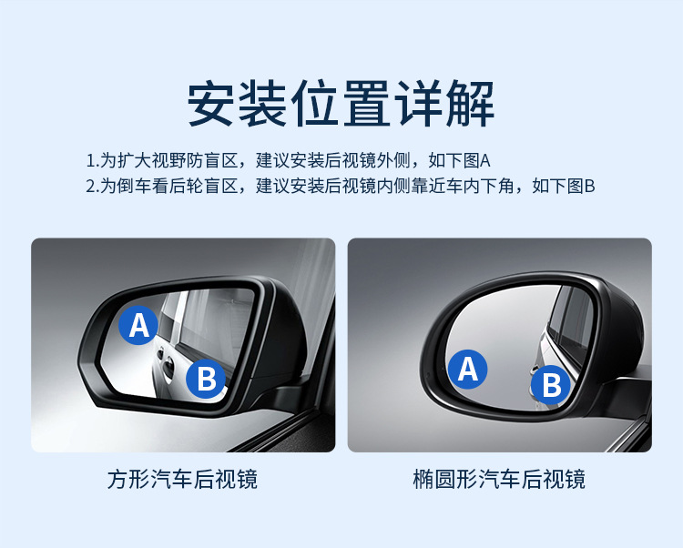 Spion mobil, cermin bulat kecil berputar 360 derajat titik buta cangkir hisap ultra HD reflektor tambahan