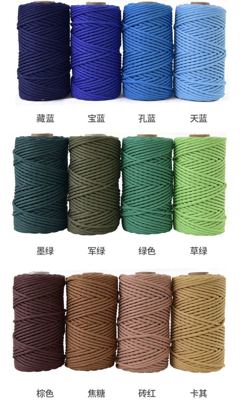 Tali katun warna-warni 5mm benang katun pengikat tali katun tali kepang katun buatan tangan DIY tali kemasan