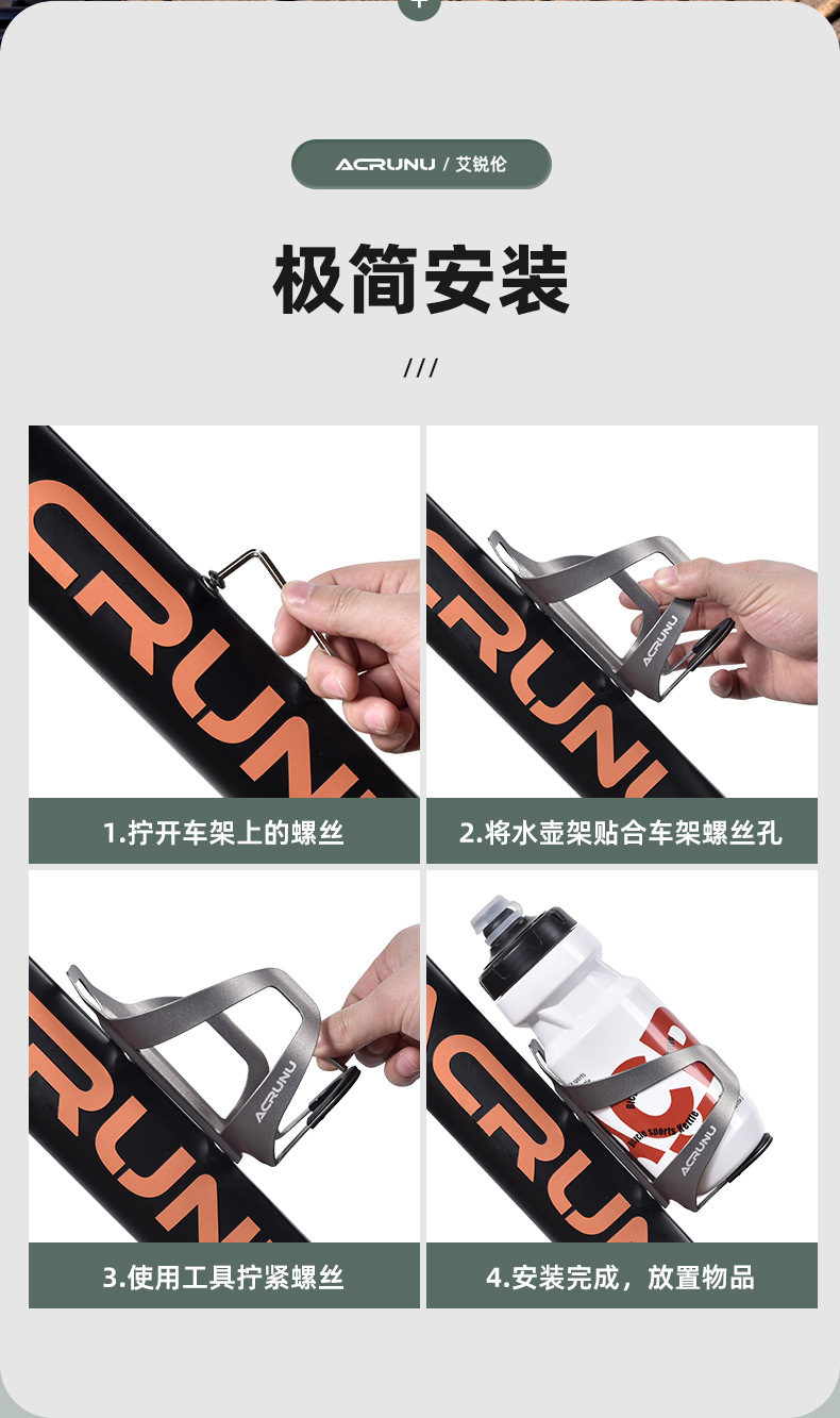 ACRUNU pemegang botol air aluminium Aloi, aksesoris peralatan berkendara sepeda gunung balap pemegang cangkir air buram