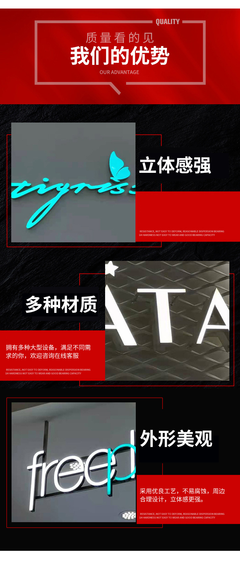 Penyedia akrilik LED menyala toko papan reklame mesin armor baja antikarat tiga dimensi tanda kata bercahaya
