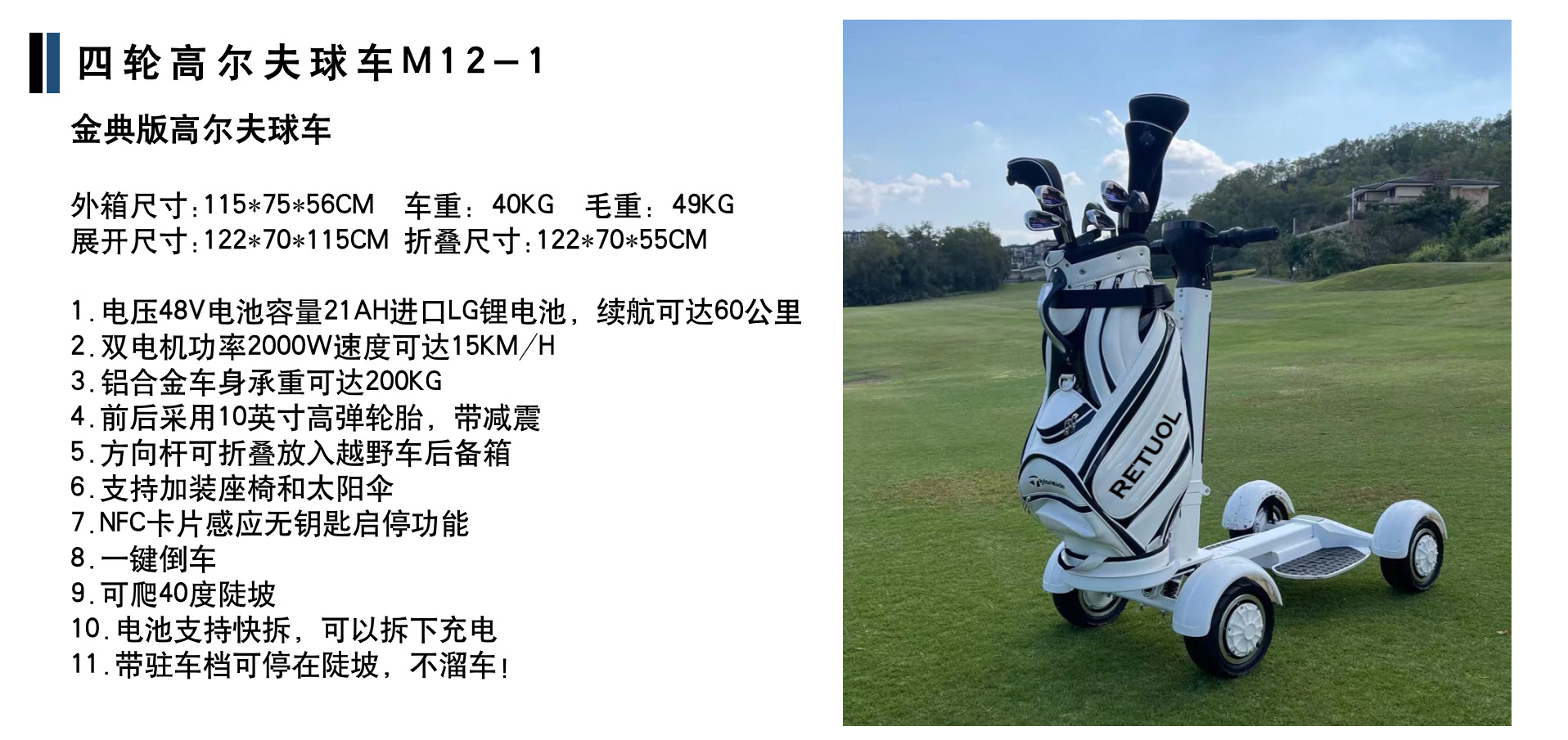 RETUOL kereta golf listrik roda empat penggerak ganda skuter lipat skuter ekspor dropshipping
