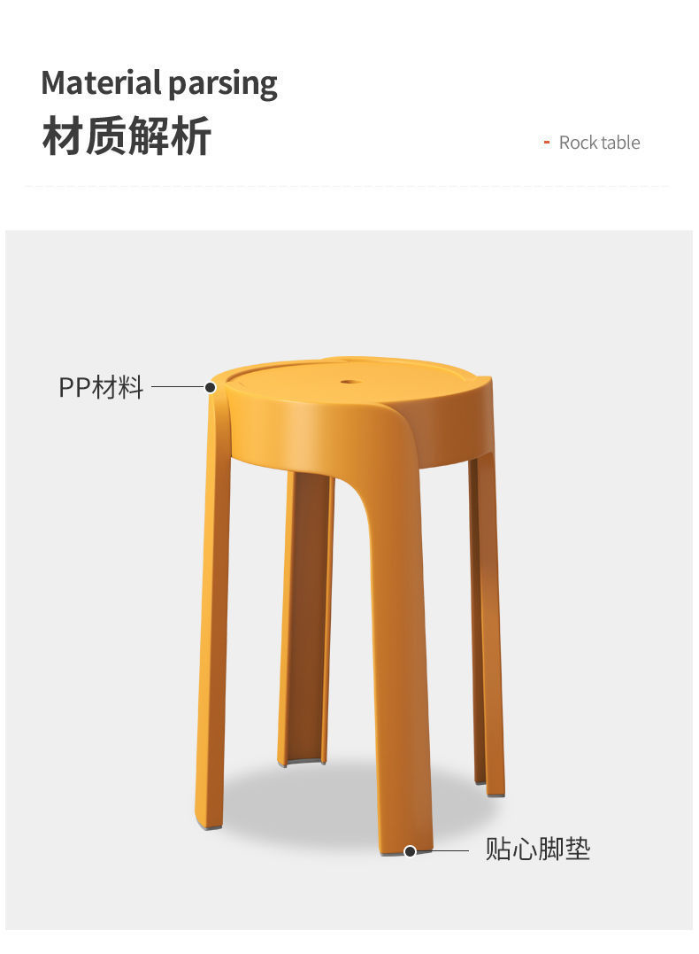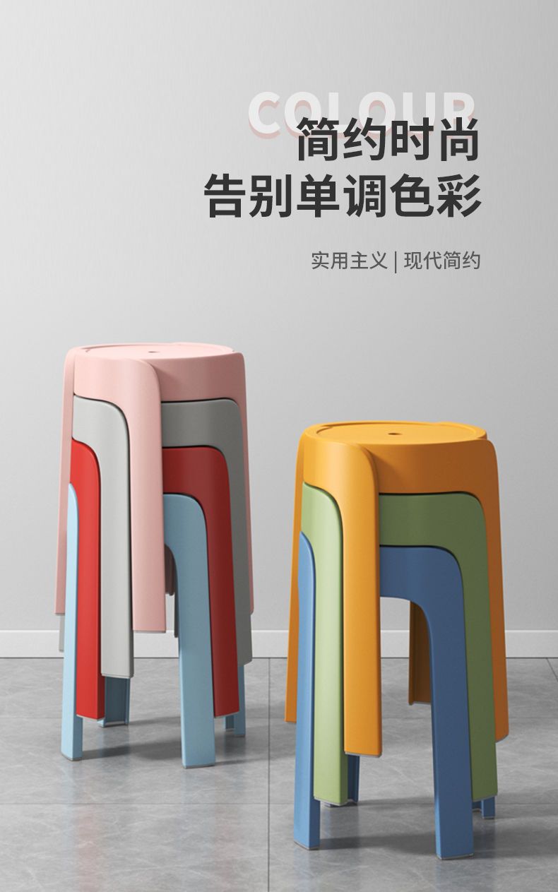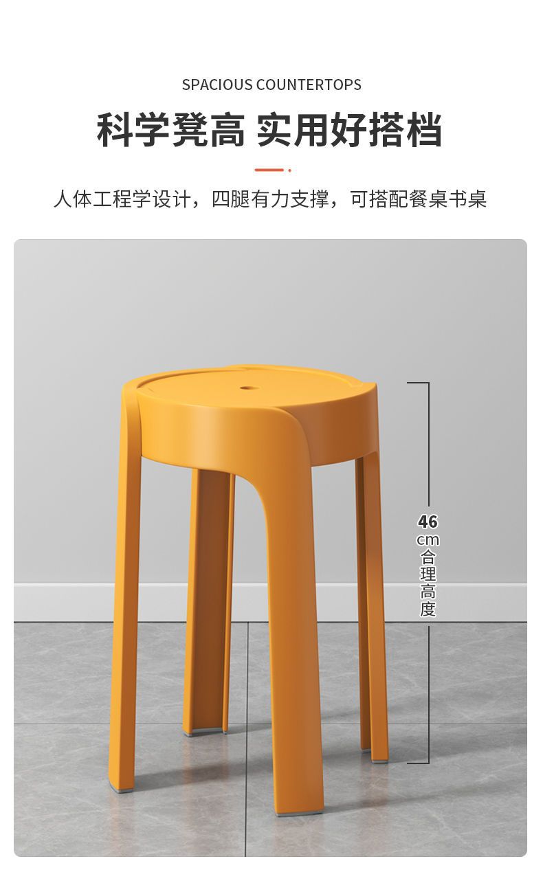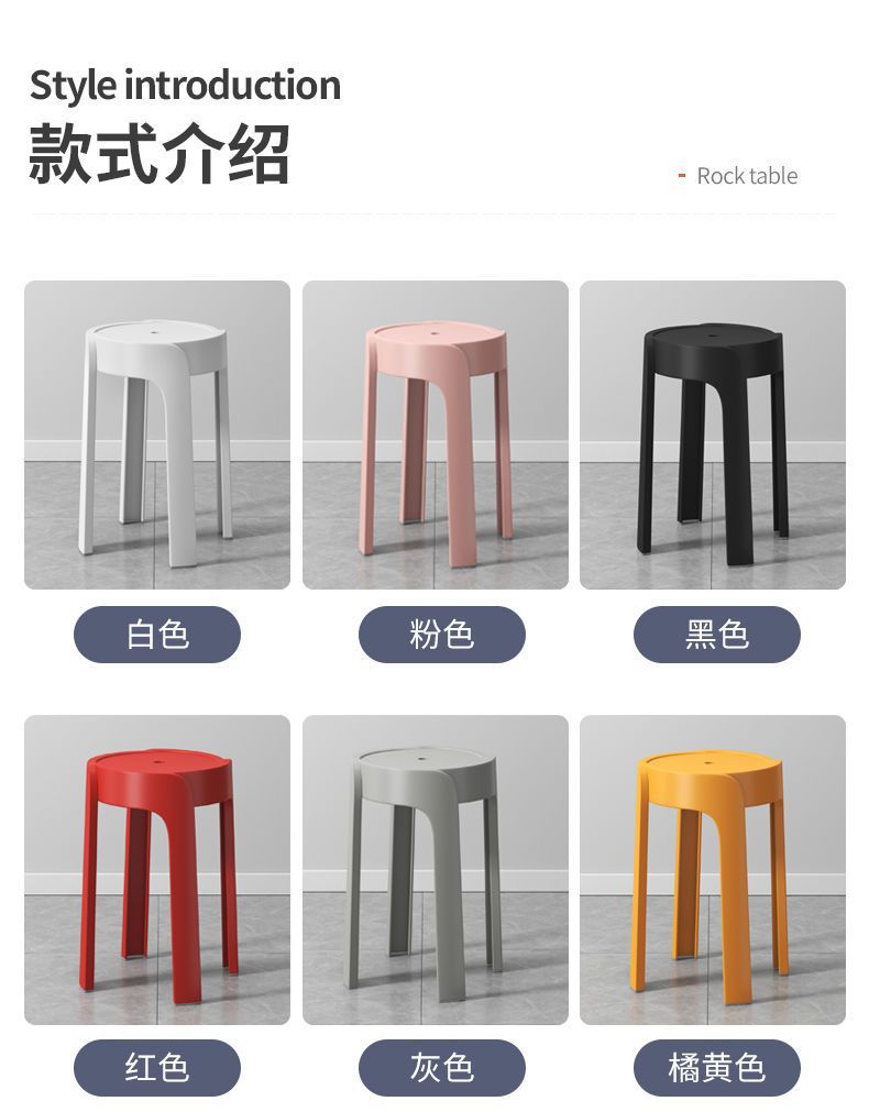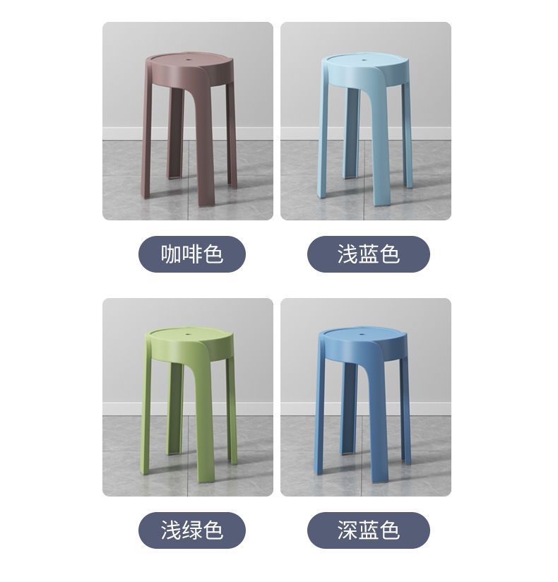 Bangku plastik rumah tangga, bangku bulat tebal, ruang tamu modern, kursi makan Tumpuk, Meja makan, kursi kincir angin