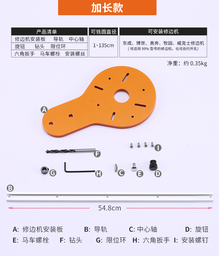 铣圆:标准款可切割圆形直径1-70(cm/公分/厘米),升级款可切割圆形直径1-135(cm/公分/厘米),可切板厚度3(cm/公分/厘米),如需切割更厚的板可配加长铣刀。