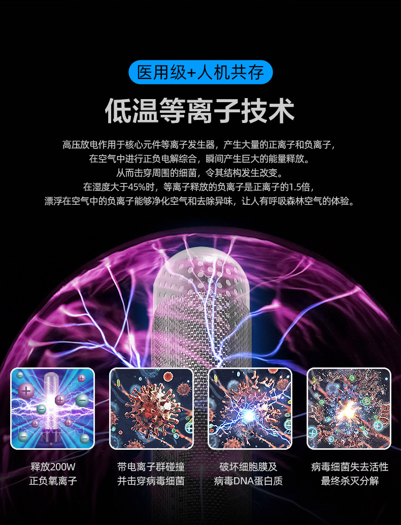 Mesin disinfeksi plasma cerdas rumah tangga, pemurni udara tidak bersuara, penghilang formaldehida sterilisasi terpasang di dinding