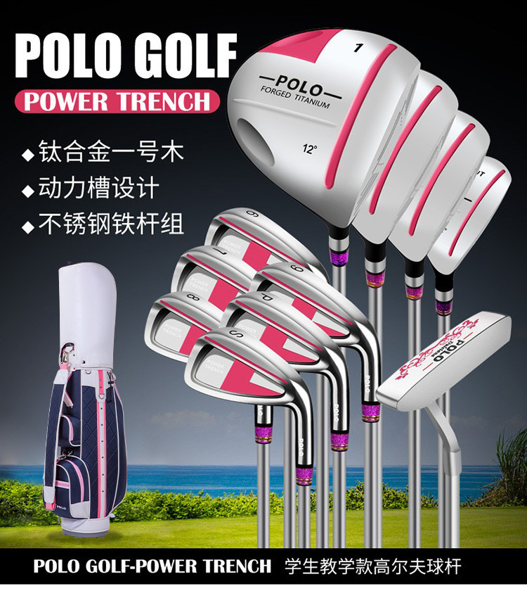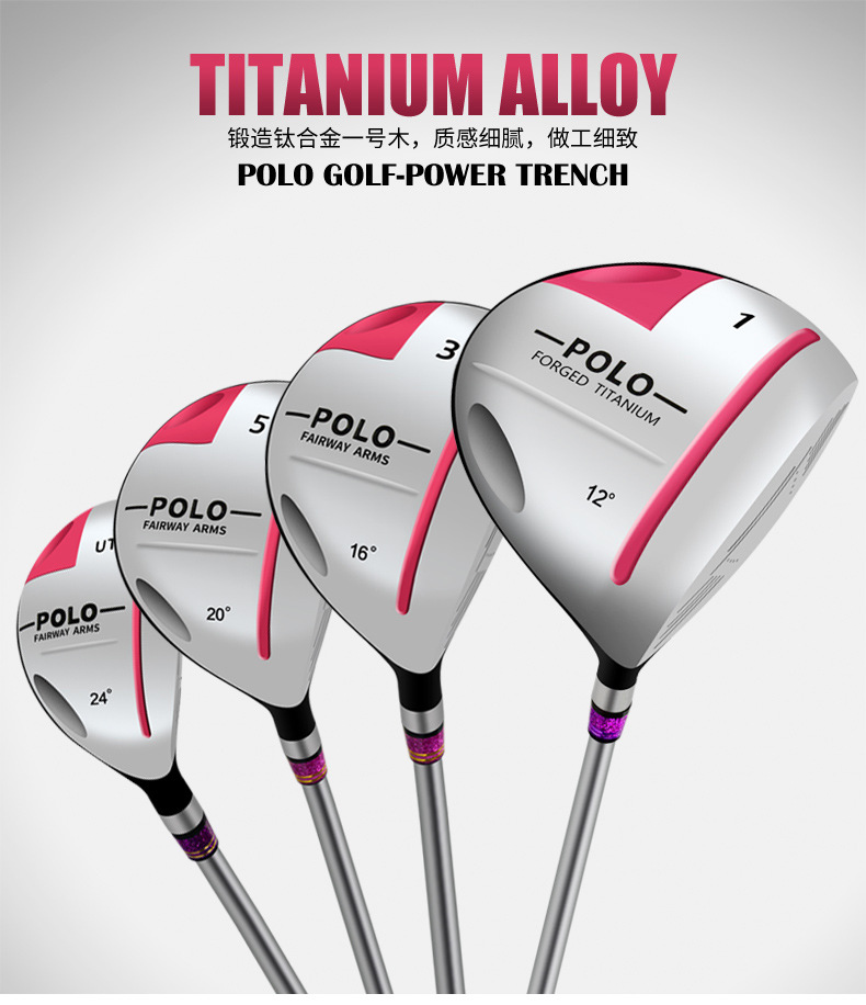 POLO set pakaian lengkap wanita, set tongkat Golf paduan titanium No. 1 kayu junior dan menengah dengan tas bola