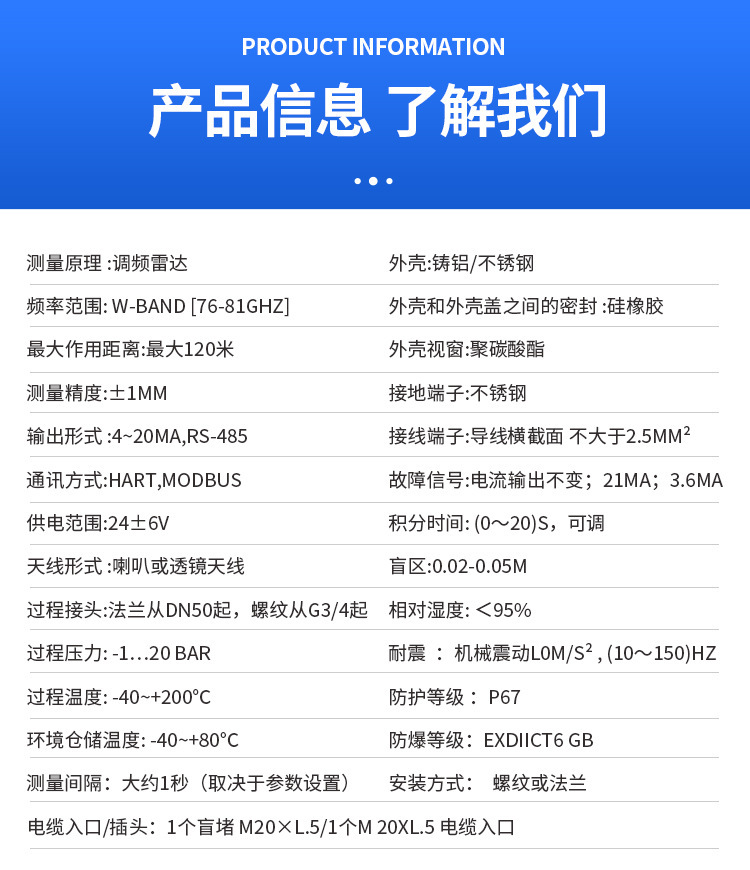Alat pengukur level radar BETE untuk waduk sungai, silo semen dan batubara, serta pengukuran level material. Alat pengukur level radar mendukung kustomisasi.