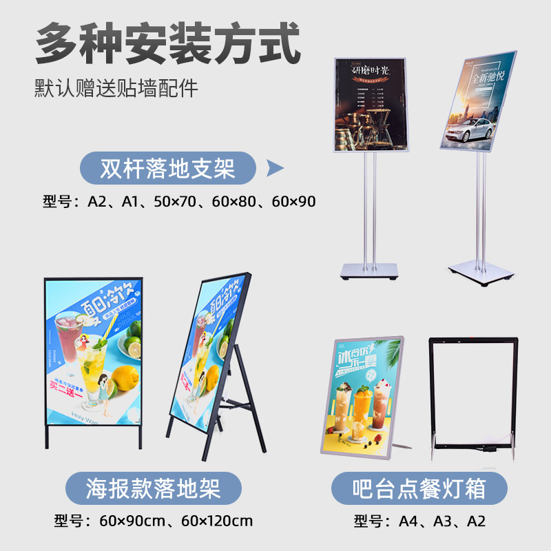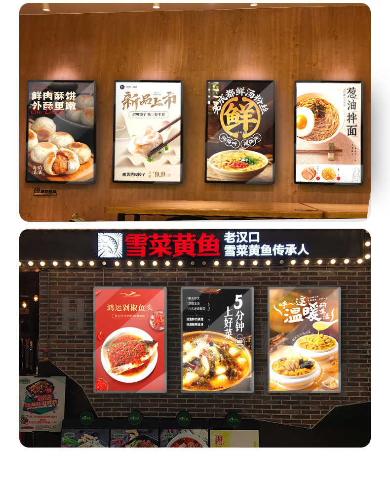 Kotak Lampu Gambar Gambar Super Tipis Papan Lampu Panel Kaca Tempered LED Papan Layar Lampu LED Papan Iklan Ilustrasi Menu Lift