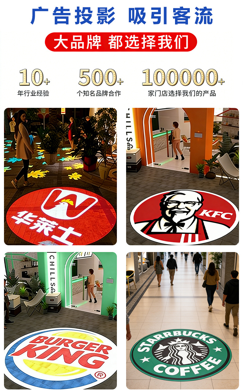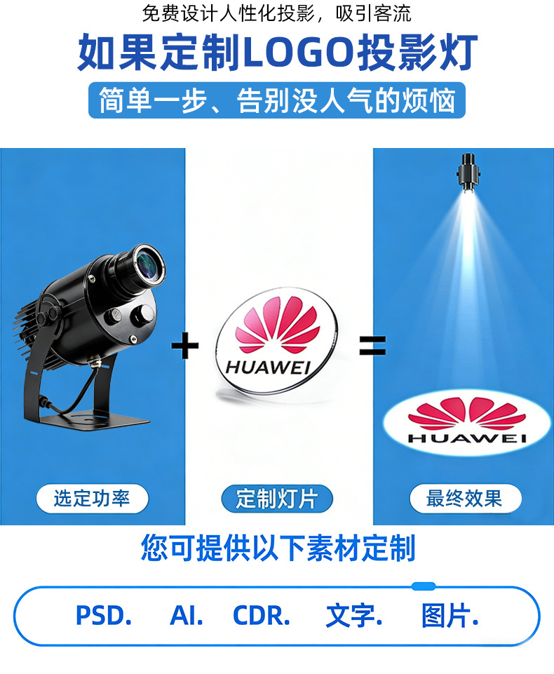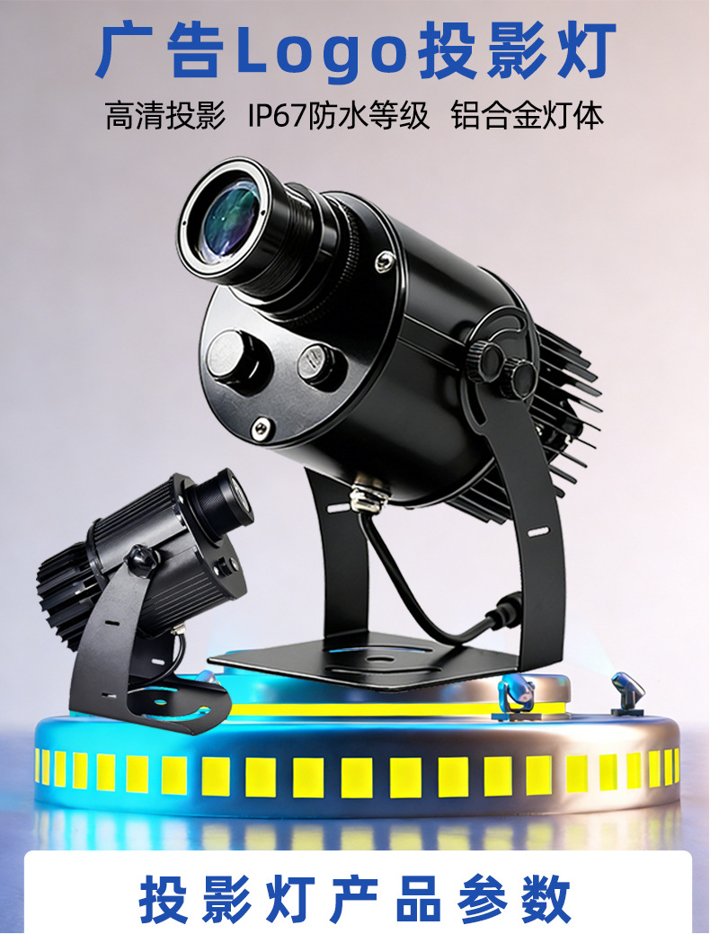 Lampu proyeksi logo iklan untuk etalase toko luar ruangan, papan nama berputar yang dipasang di tanah dengan huruf dan pola, lampu proyeksi iklan.