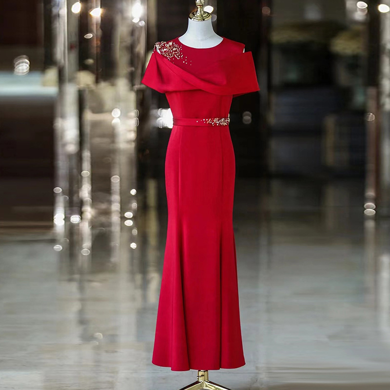 Gaun jamuan pernikahan Happy mother-in-law gaun malam ibu pernikahan gaun pesta cheongsam merah muda