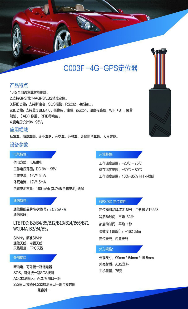 SOS ● 可外接一路SOS按键