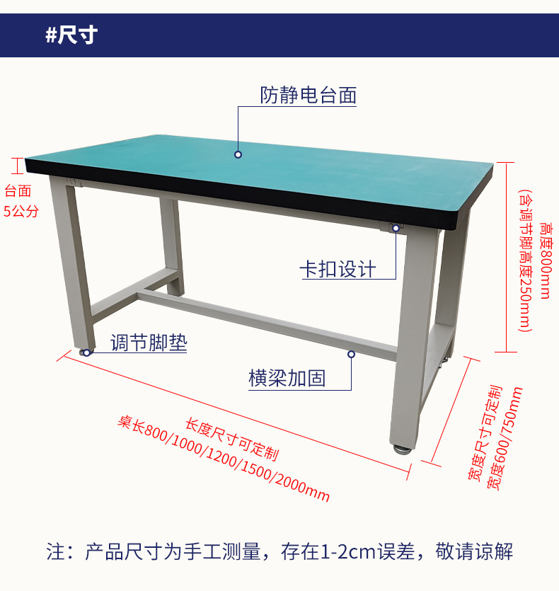 Pekerjaan berat meja kerja fitter anti-statis meja kerja garis perakitan bengkel tugas berat meja platform antistatis