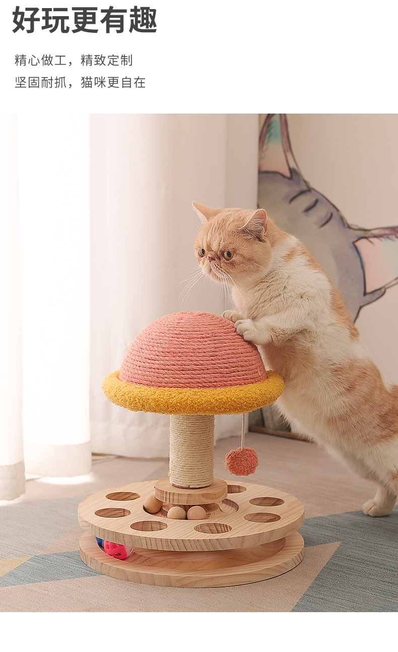 Mainan kucing meja putar kayu padat langsung dari pabrik cakar cakar kucing papan gores kucing terintegrasi lucu dan persediaan kucing satu bagian pengiriman