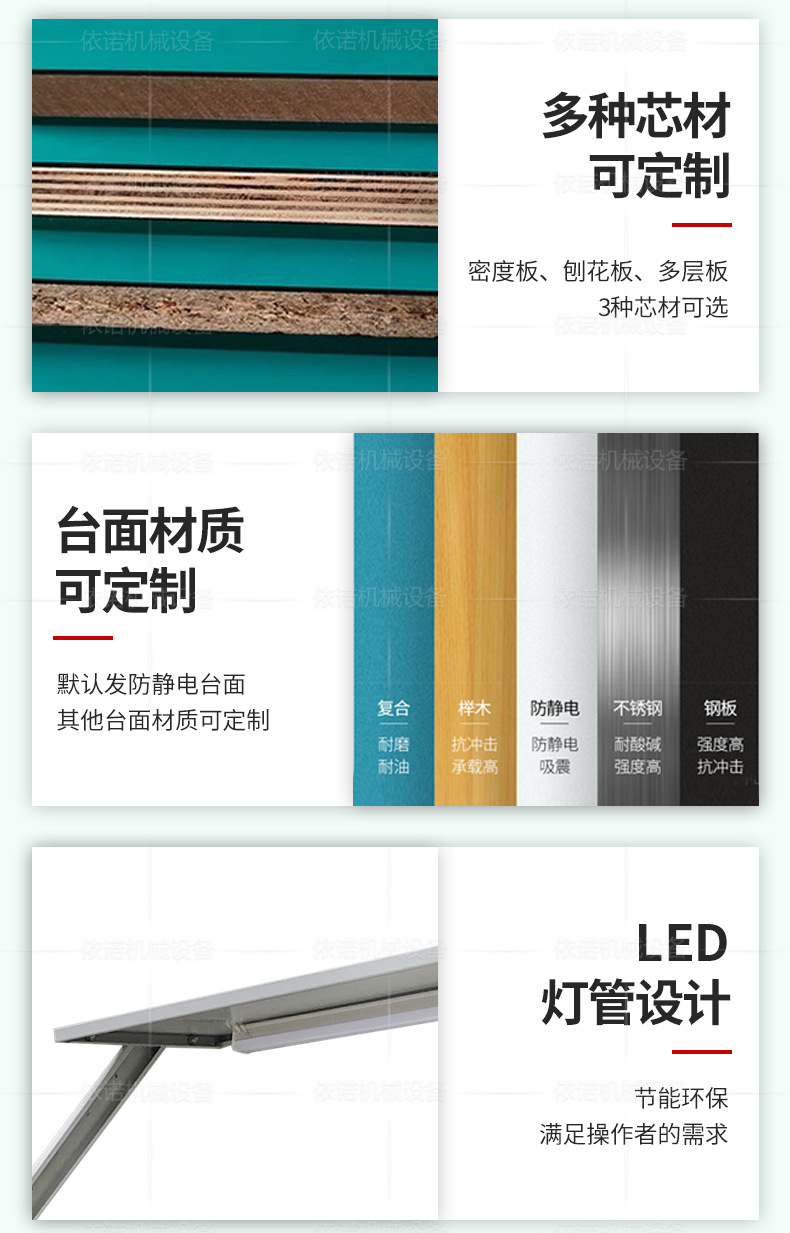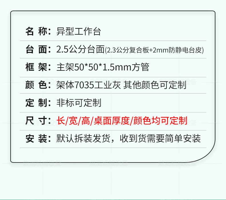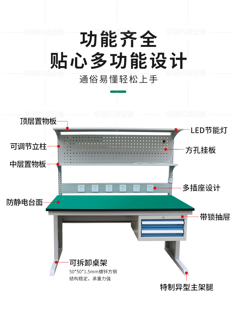 Meja Kerja anti statis, bentuk khusus bengkel pabrik kemasan meja pemeliharaan garis perakitan meja datar bilateral dengan lampu dalam stok
