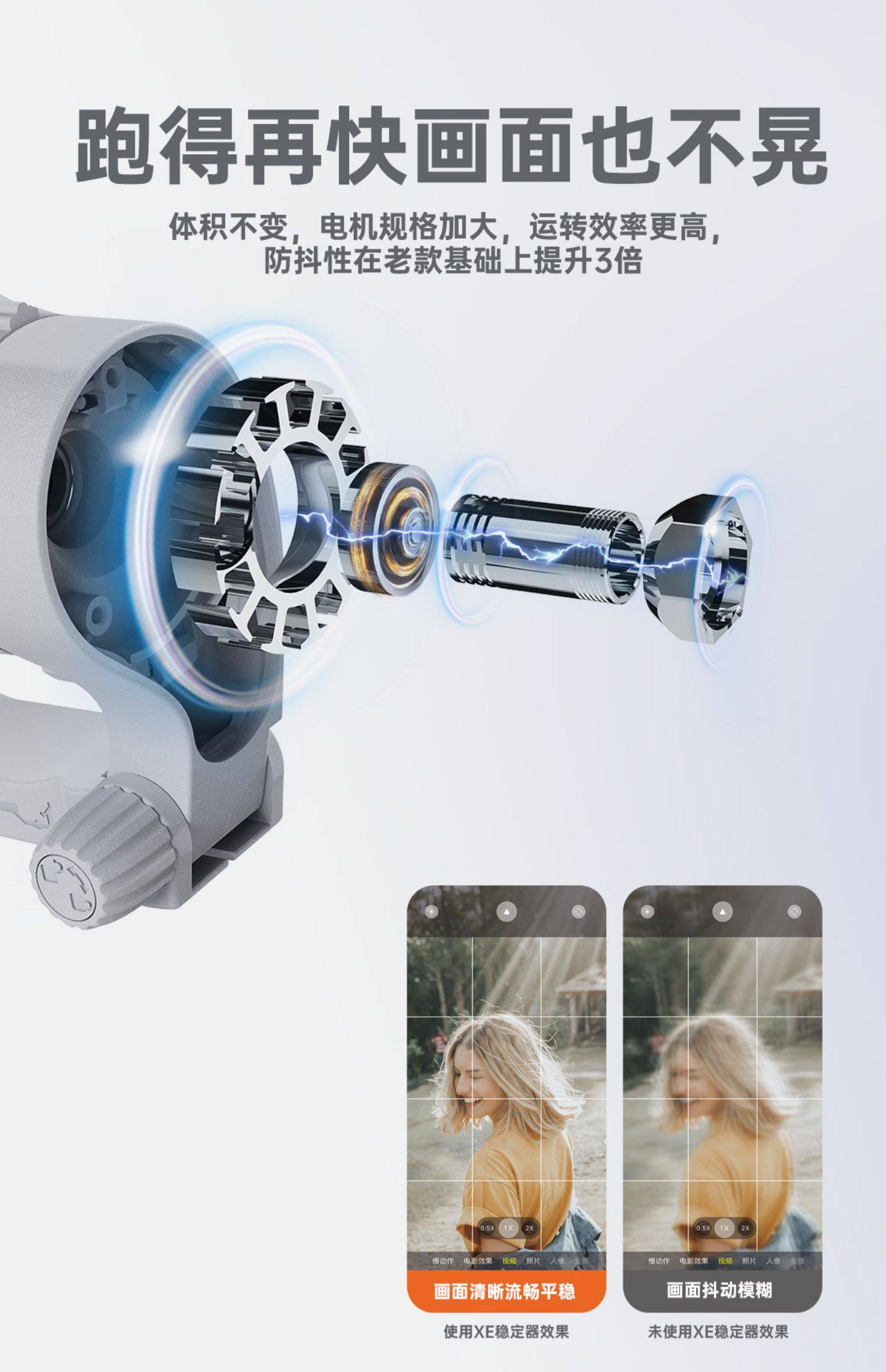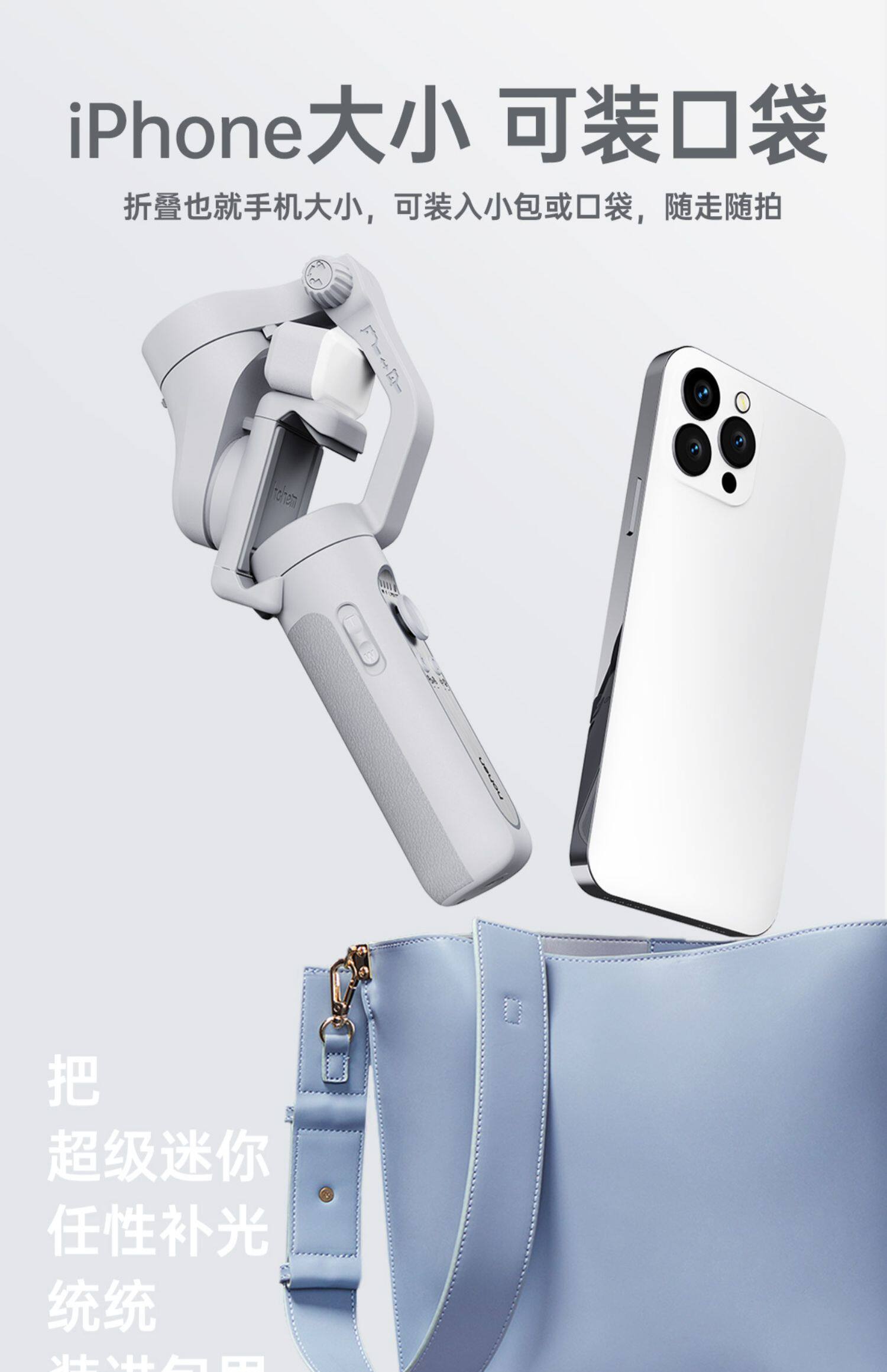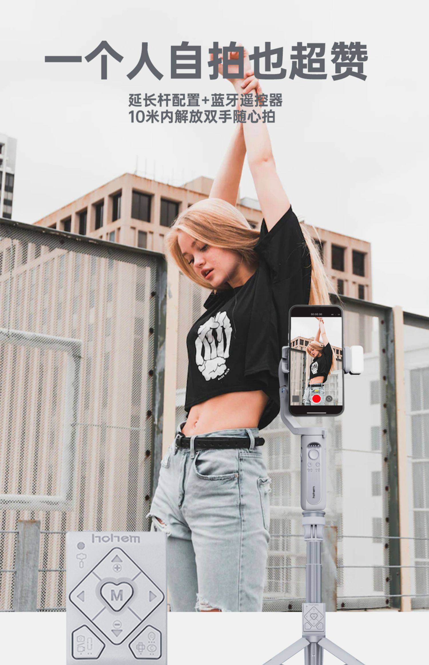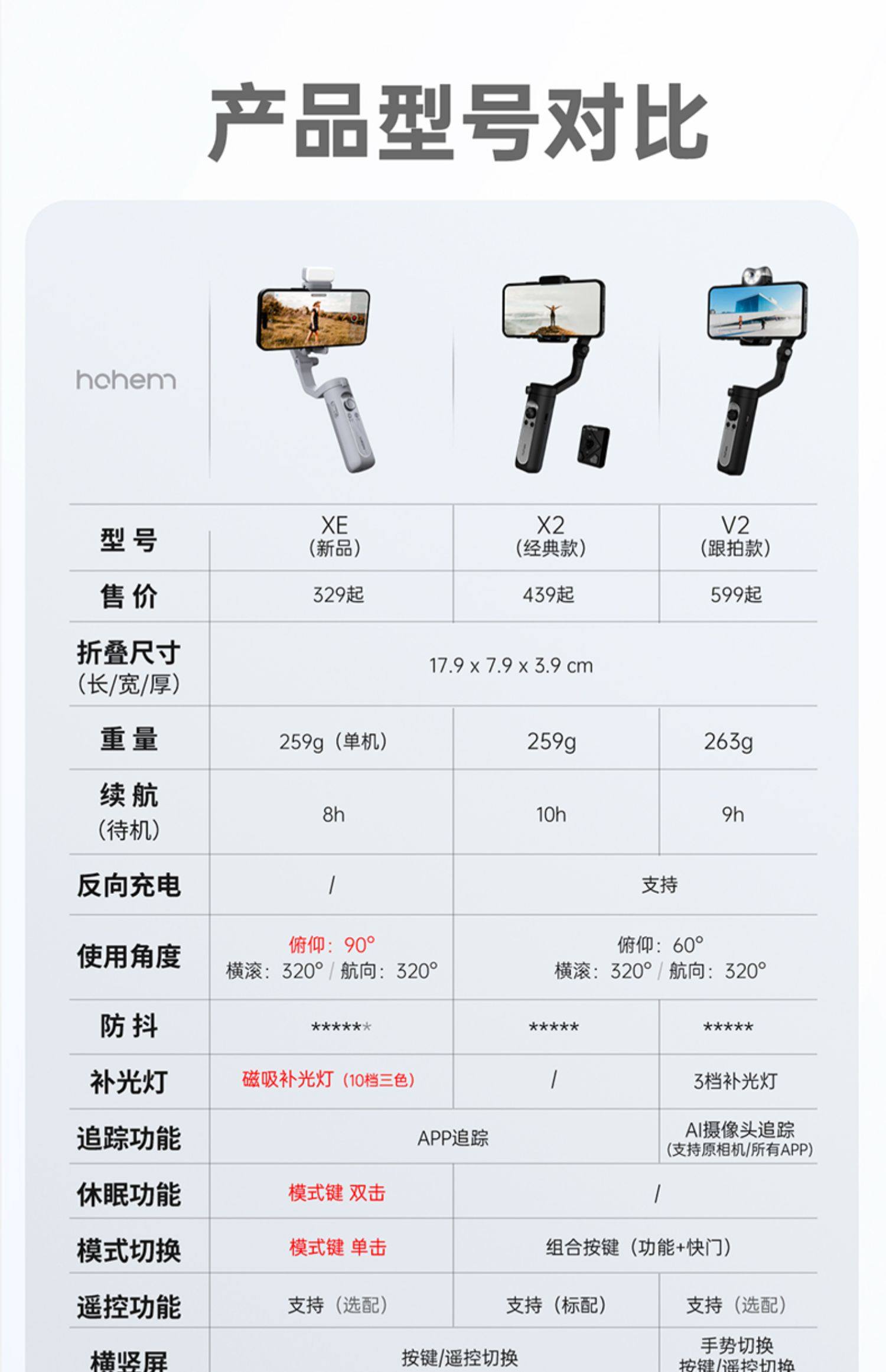 Hohem penstabil ponsel XE, tiga sumbu anti-guncangan genggam PTZ dan vlog