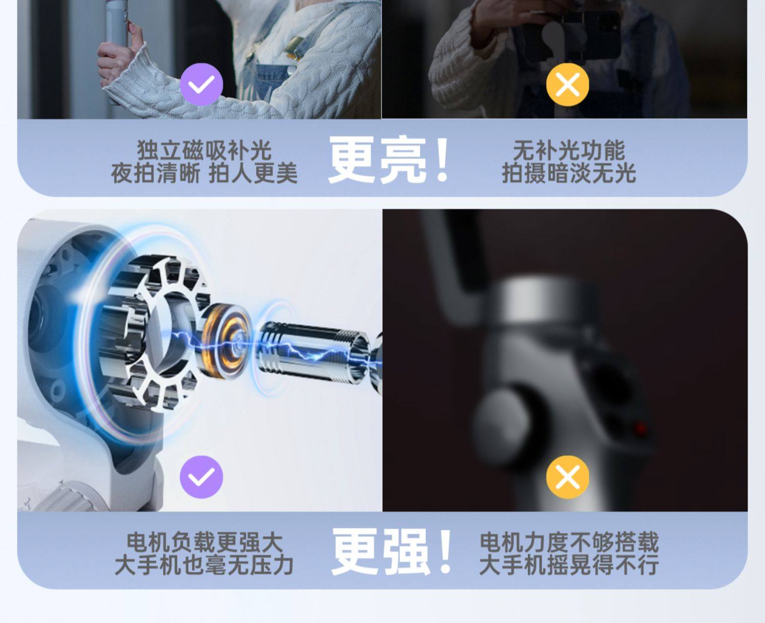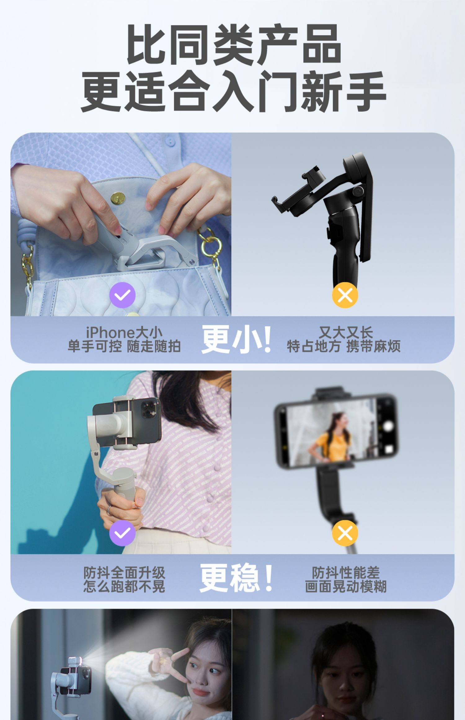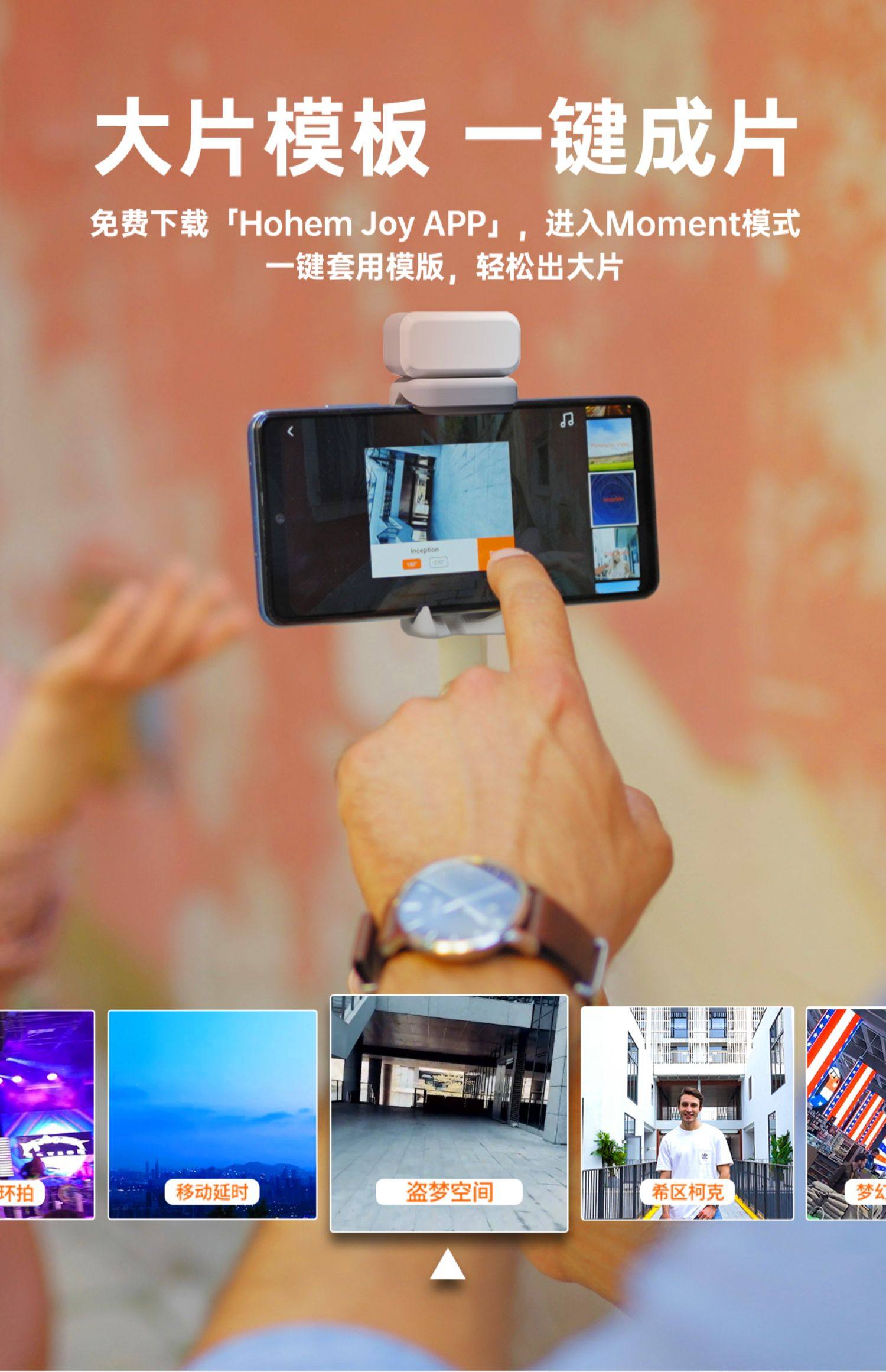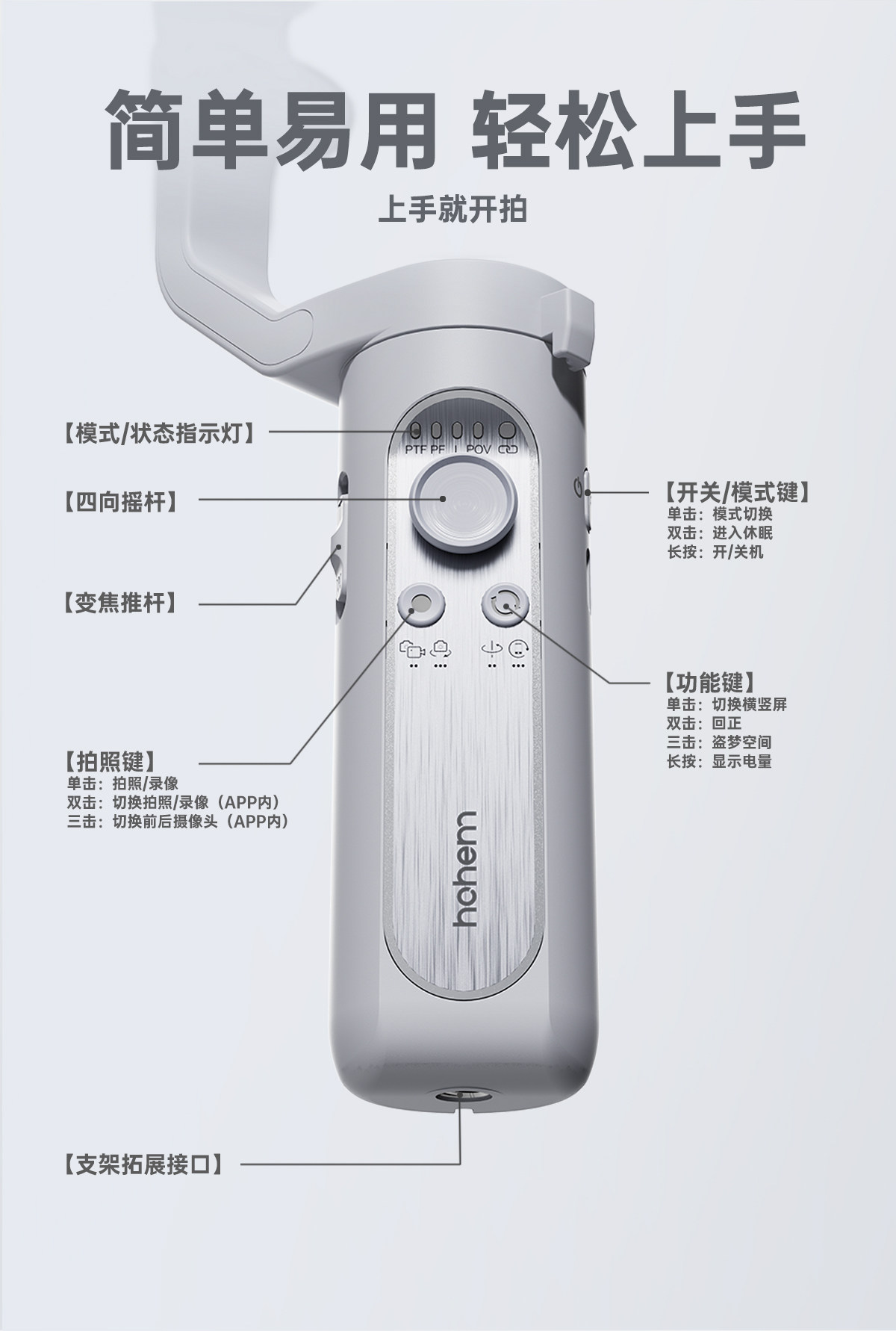 Hohem penstabil ponsel XE, tiga sumbu anti-guncangan genggam PTZ dan vlog