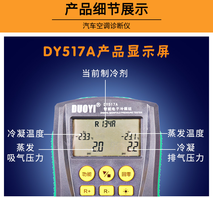 Meteran tekanan udara elektronik mobil, meteran tekanan batu bara dingin, pendingin udara fluorometer elektronik, perbaikan udara mobil One DY517