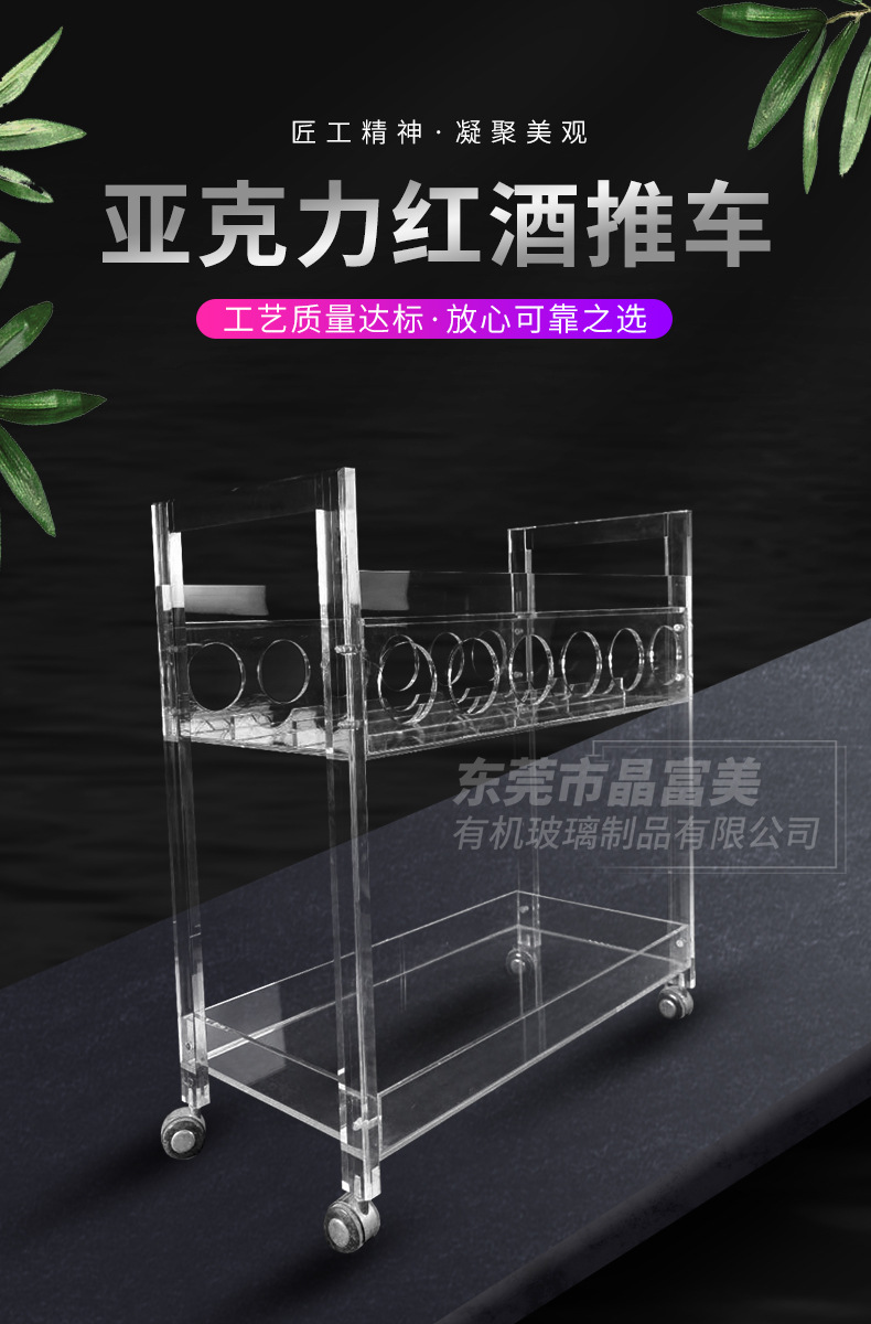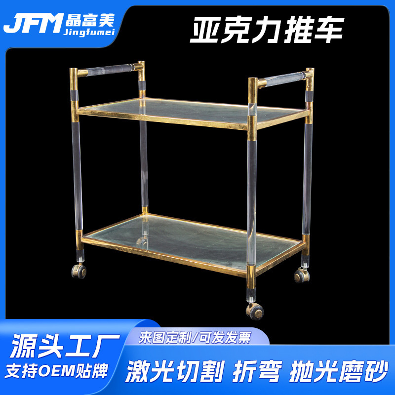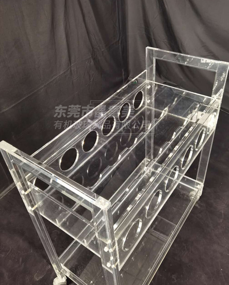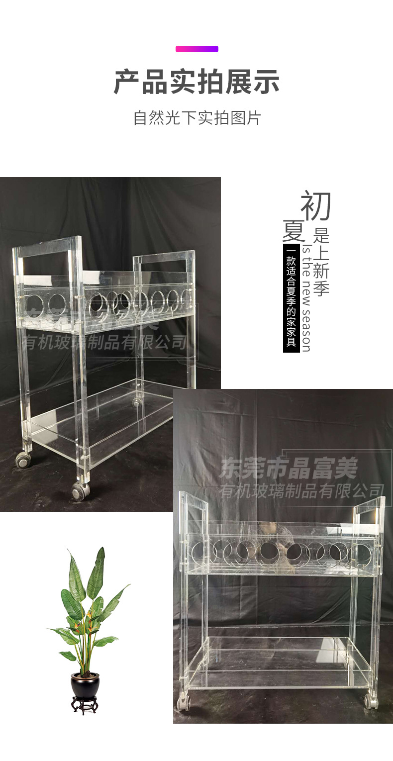 Troli anggur akrilik transparan, kereta makan gaya khusus hotel dari plexiglass yang didorong tangan, kereta minuman dan anggur