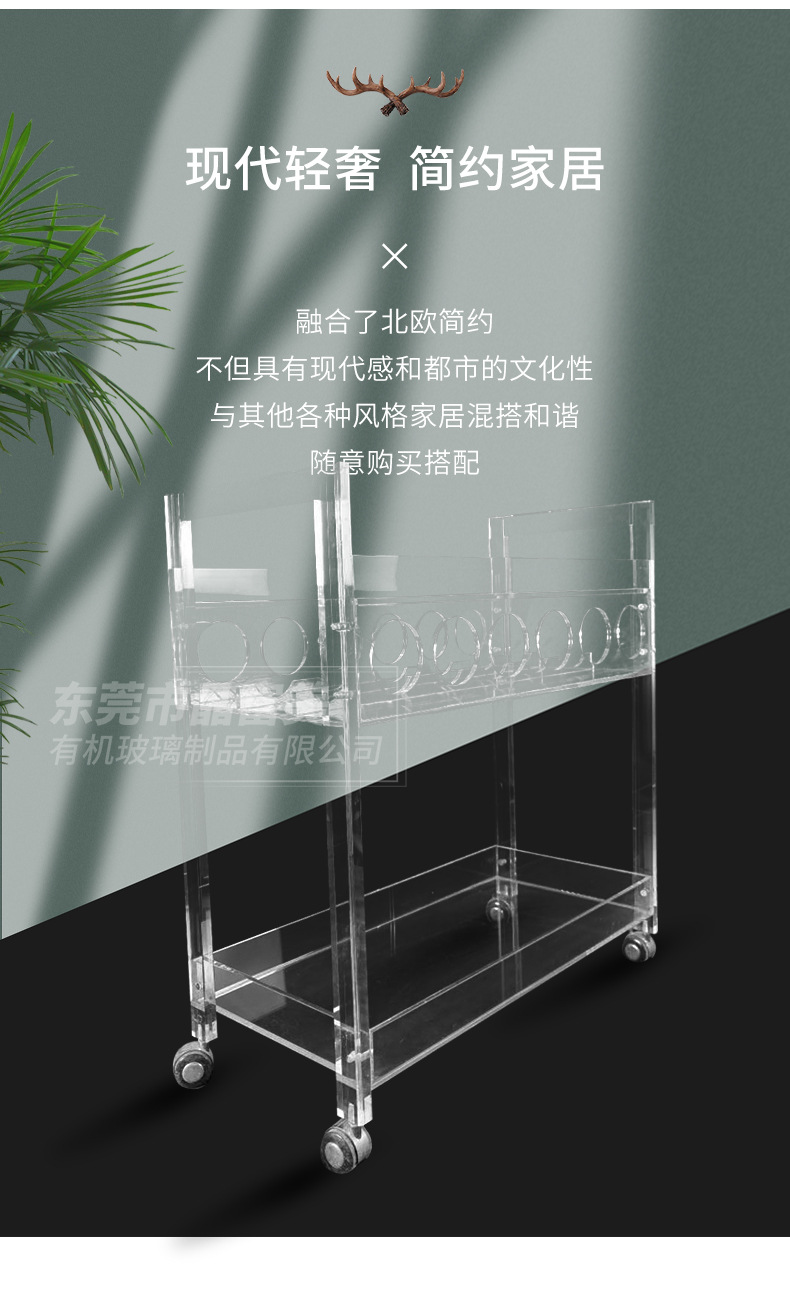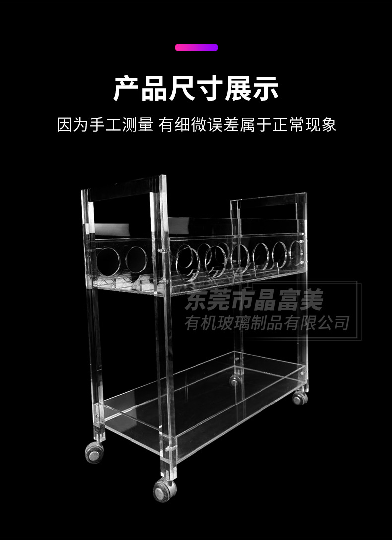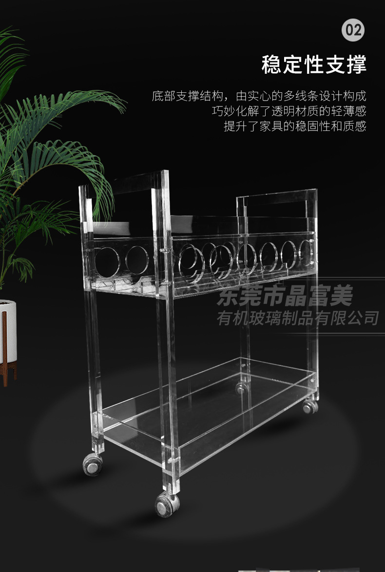 Troli anggur akrilik transparan, kereta makan gaya khusus hotel dari plexiglass yang didorong tangan, kereta minuman dan anggur
