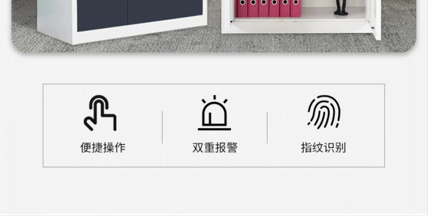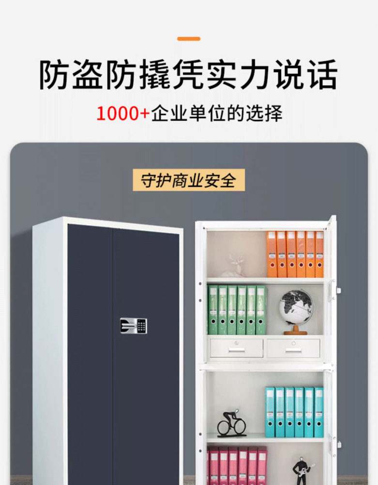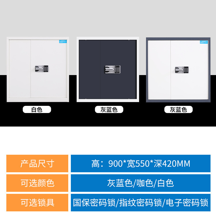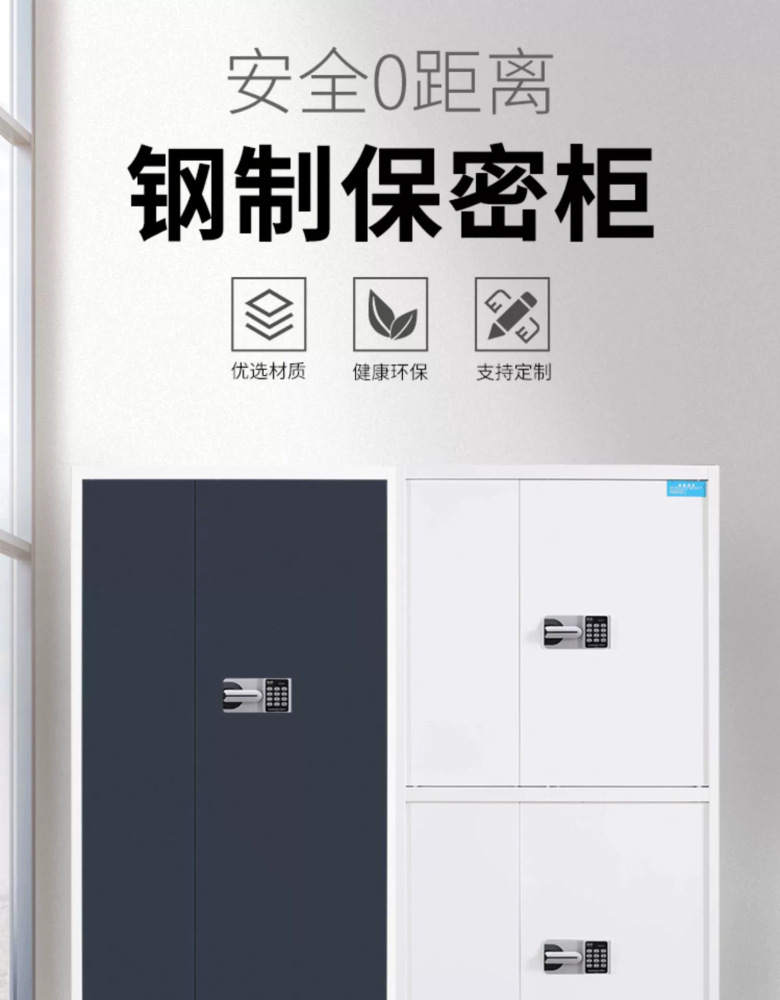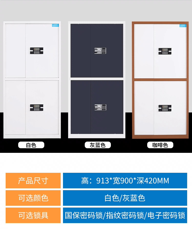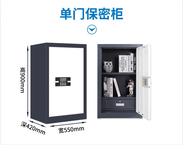 Lemari penyimpanan data modern minimalis untuk kantor keuangan kecil, terbuat dari baja, dengan fitur pengaman elektronik, kata sandi, dan sidik jari.