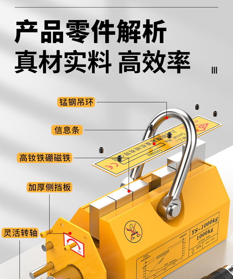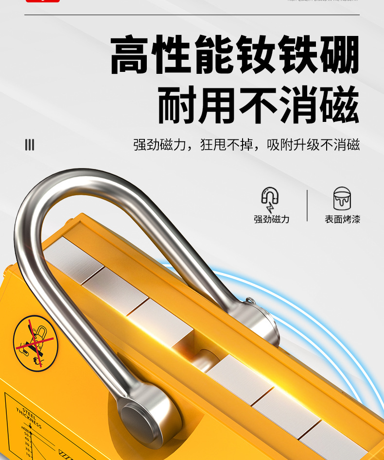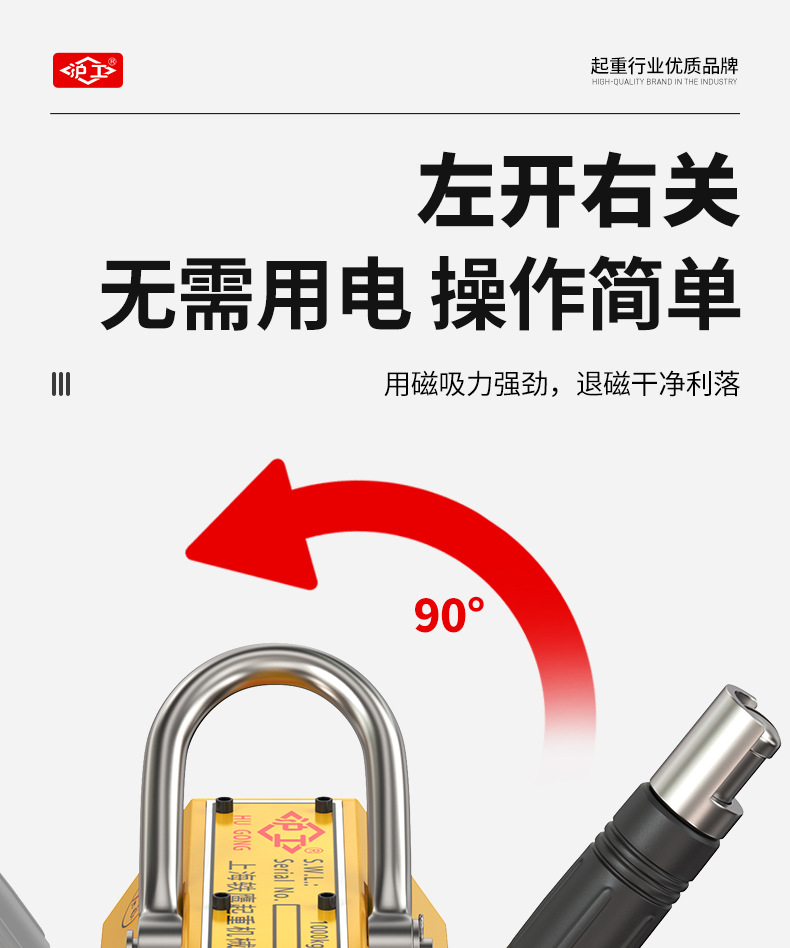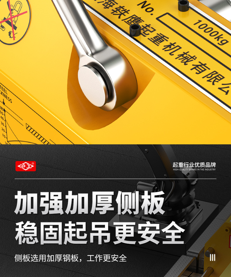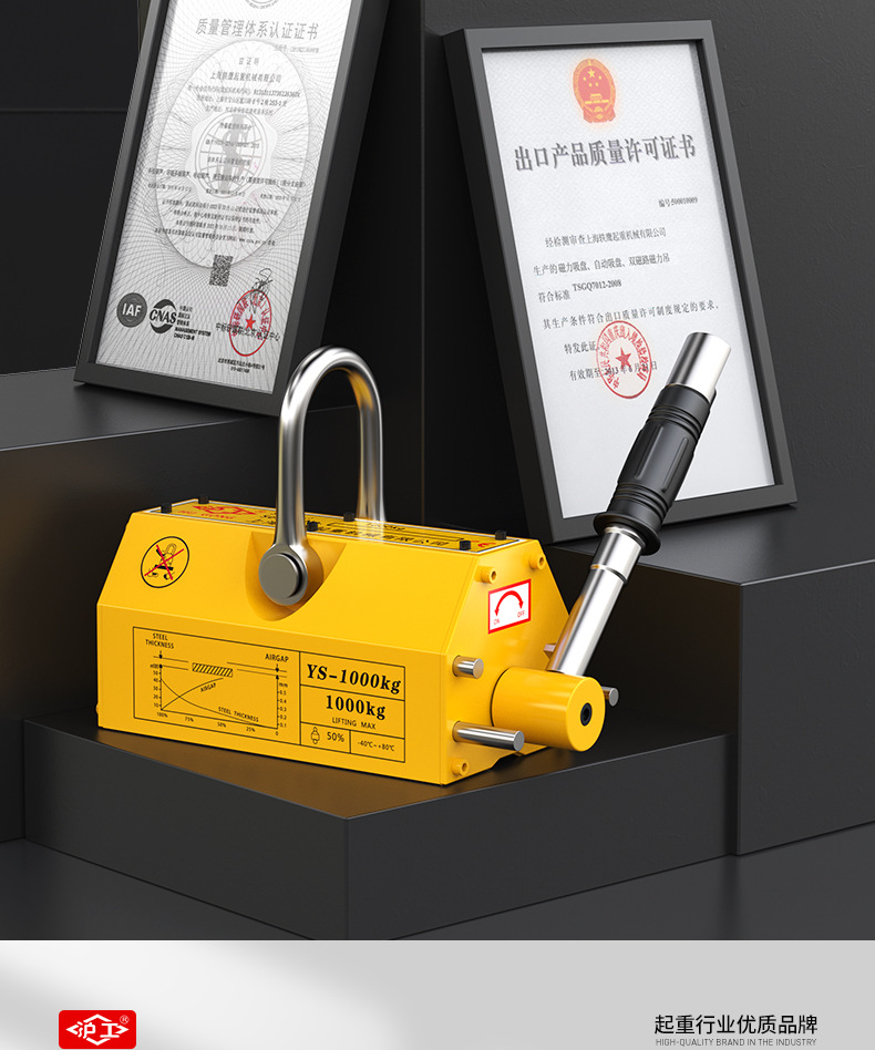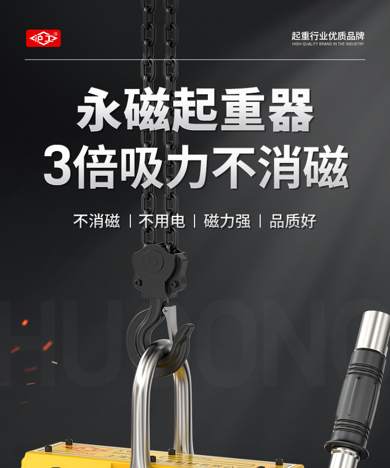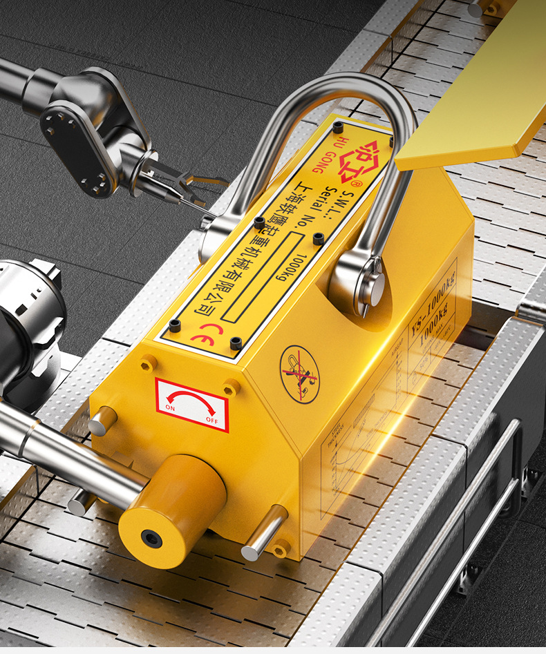 Hugong Industrial Magnet Kuat Magnet Permanen Crane 2 ton 3 ton 5 ton tiga gaya putus daya hisap manual crane magnetik.