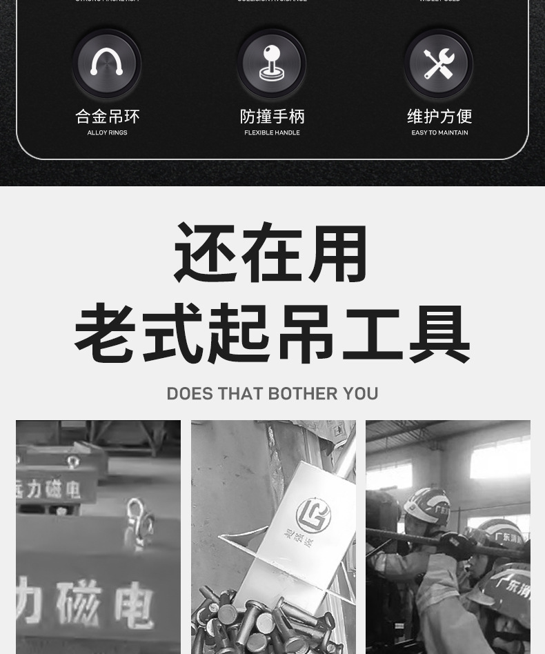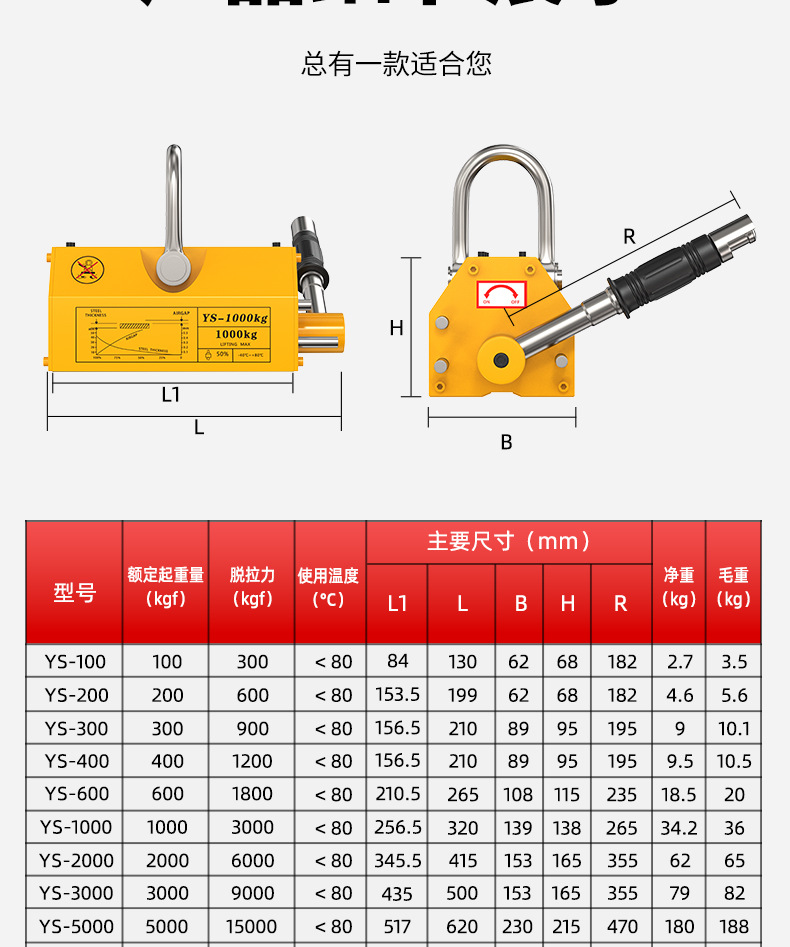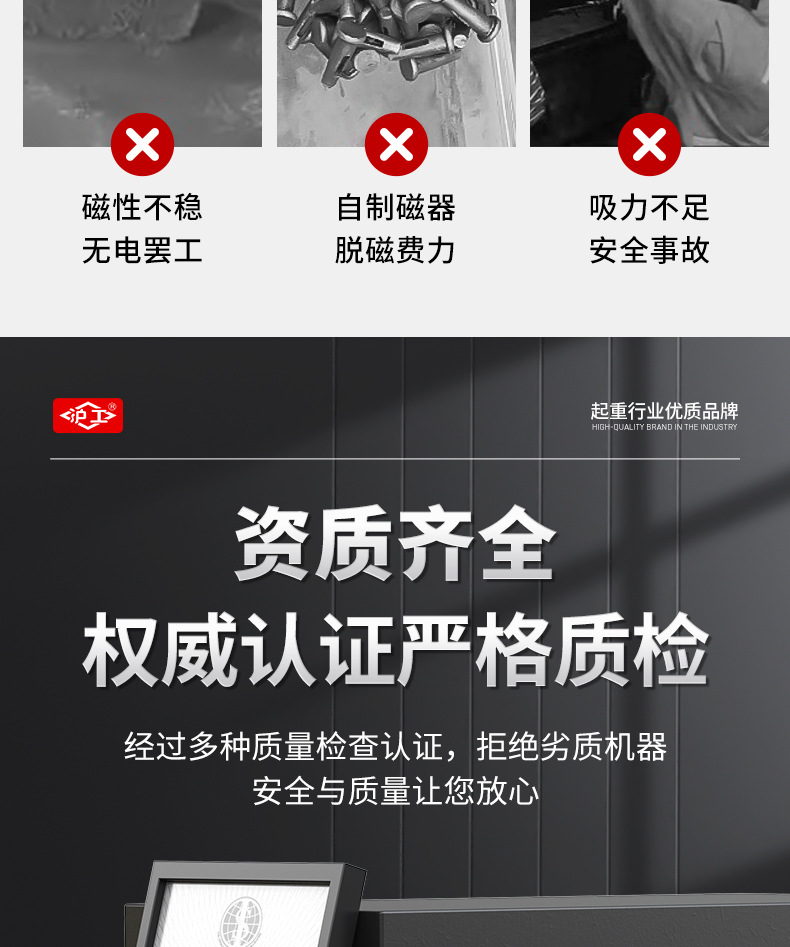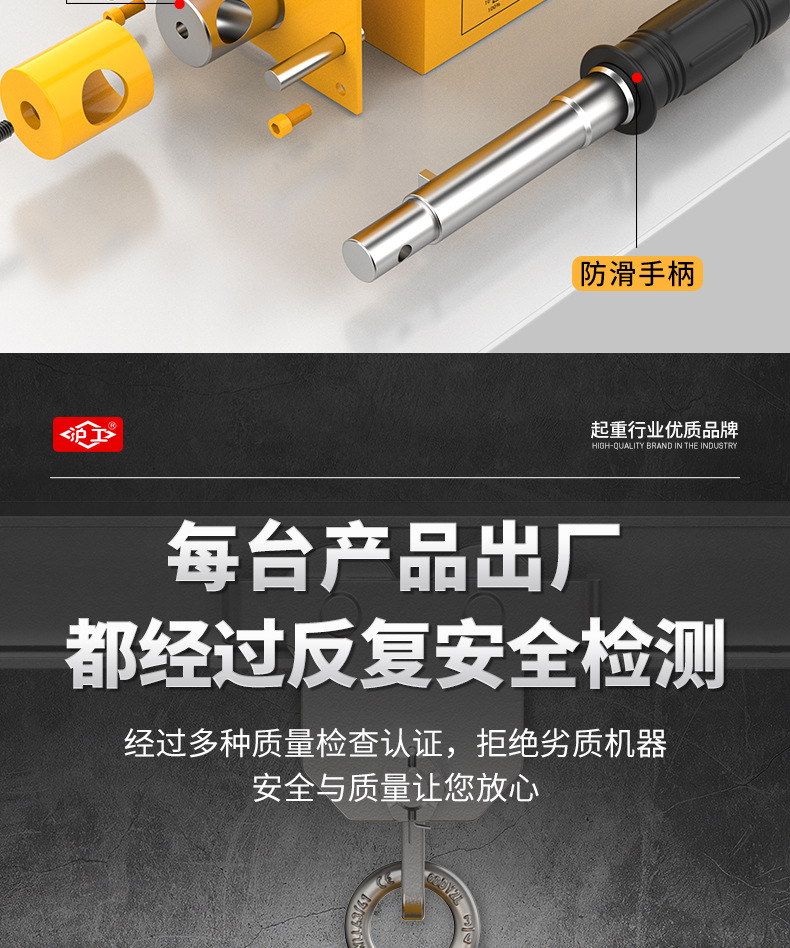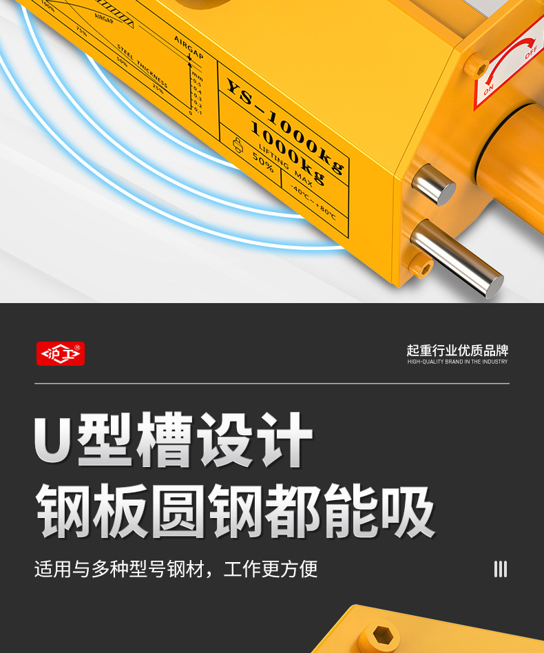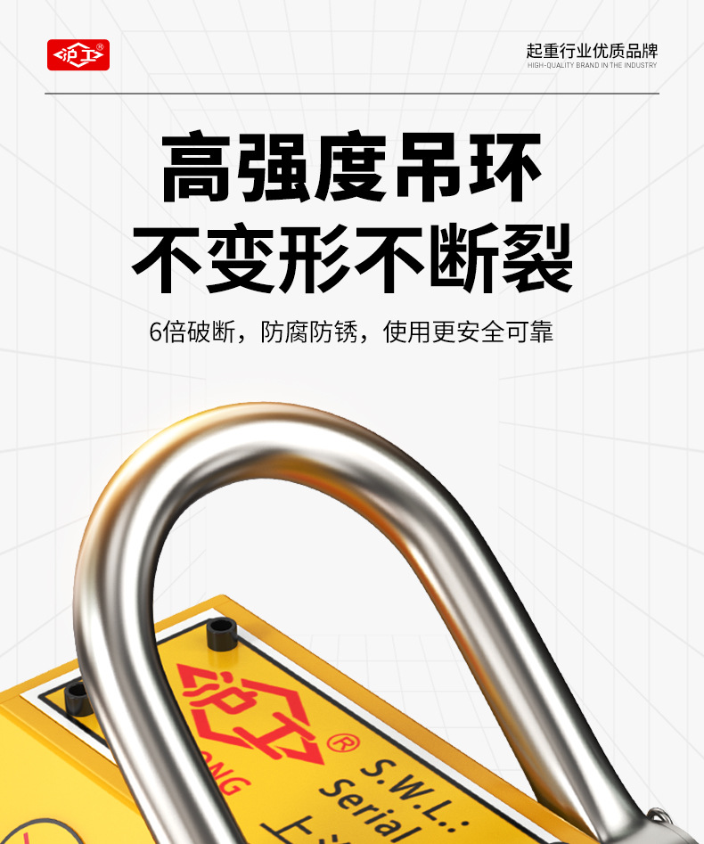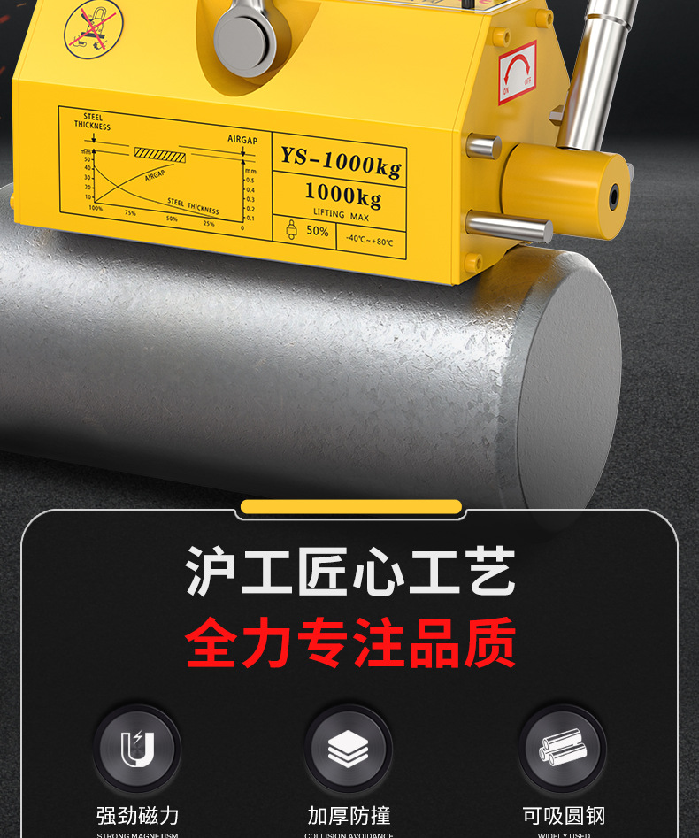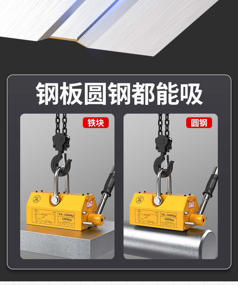 Hugong Industrial Magnet Kuat Magnet Permanen Crane 2 ton 3 ton 5 ton tiga gaya putus daya hisap manual crane magnetik.