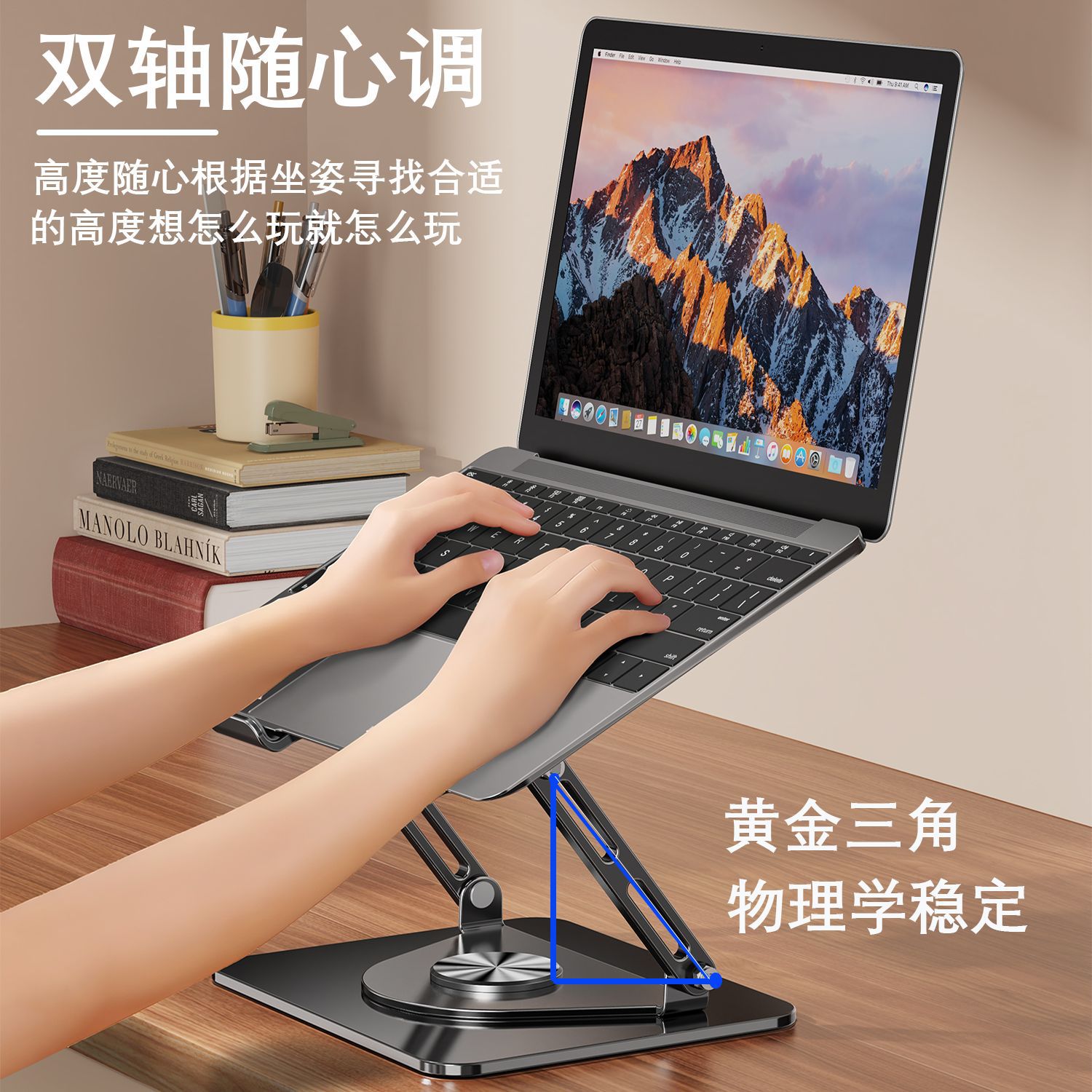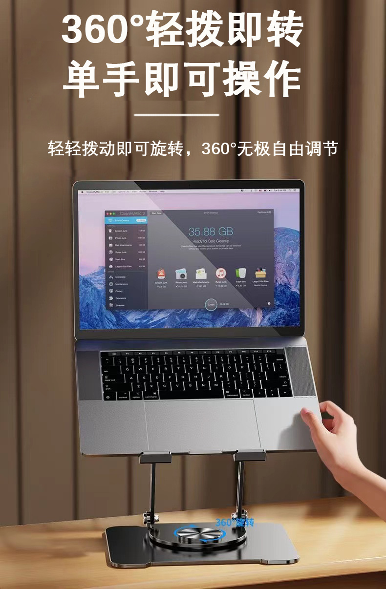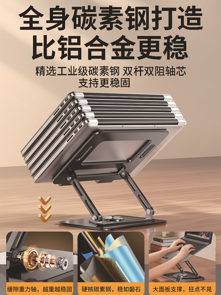 Dudukan laptop berputar 360 derajat, baja karbon lintas batas dapat dilipat mengangkat pembuangan panas