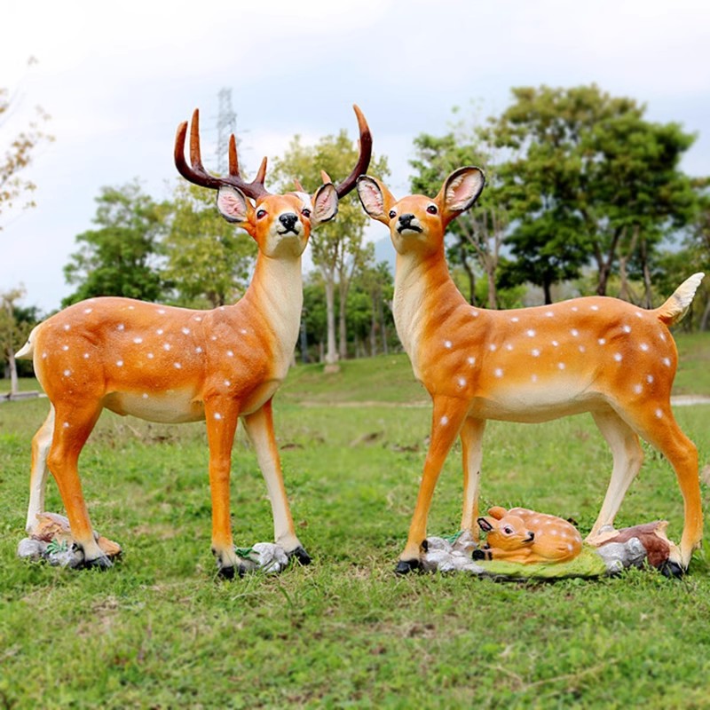Dekorasi rusa Sika, untuk lantai taman lanskap taman, simulasi patung kaca taman luar ruangan