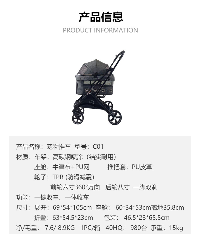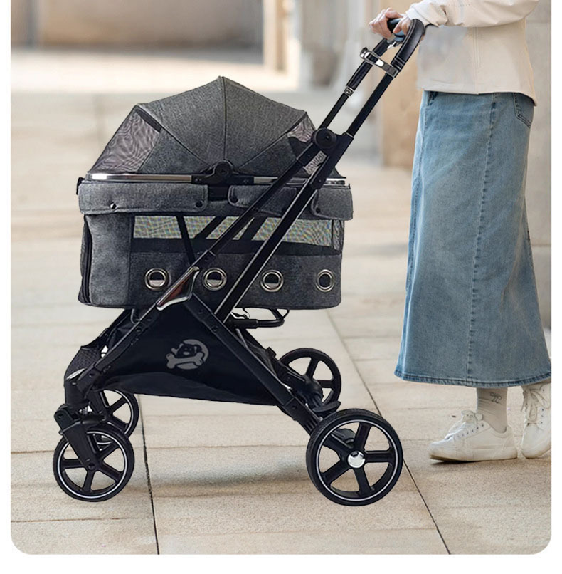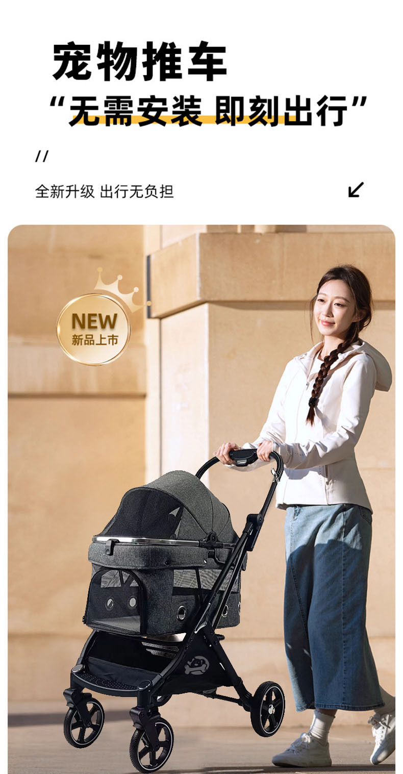 Kereta dorong hewan peliharaan lipat ringan lintas batas, serbaguna, portabel, ruang besar, universal untuk kucing dan anjing