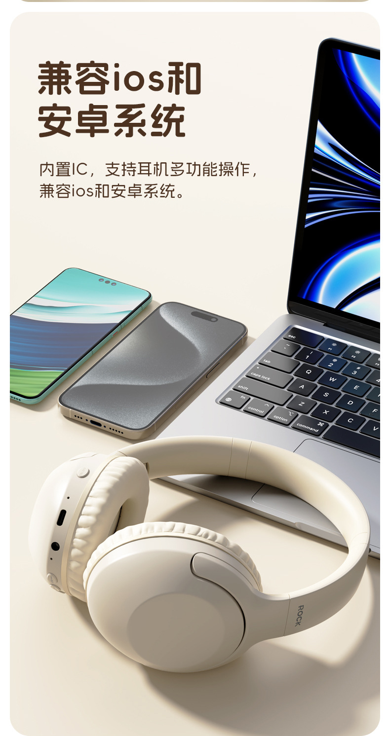 ROCK/ROCK O3 headset Bluetooth nirkabel, headset permainan komputer nirkabel dapat ditarik tahan lama pengurang kebisingan