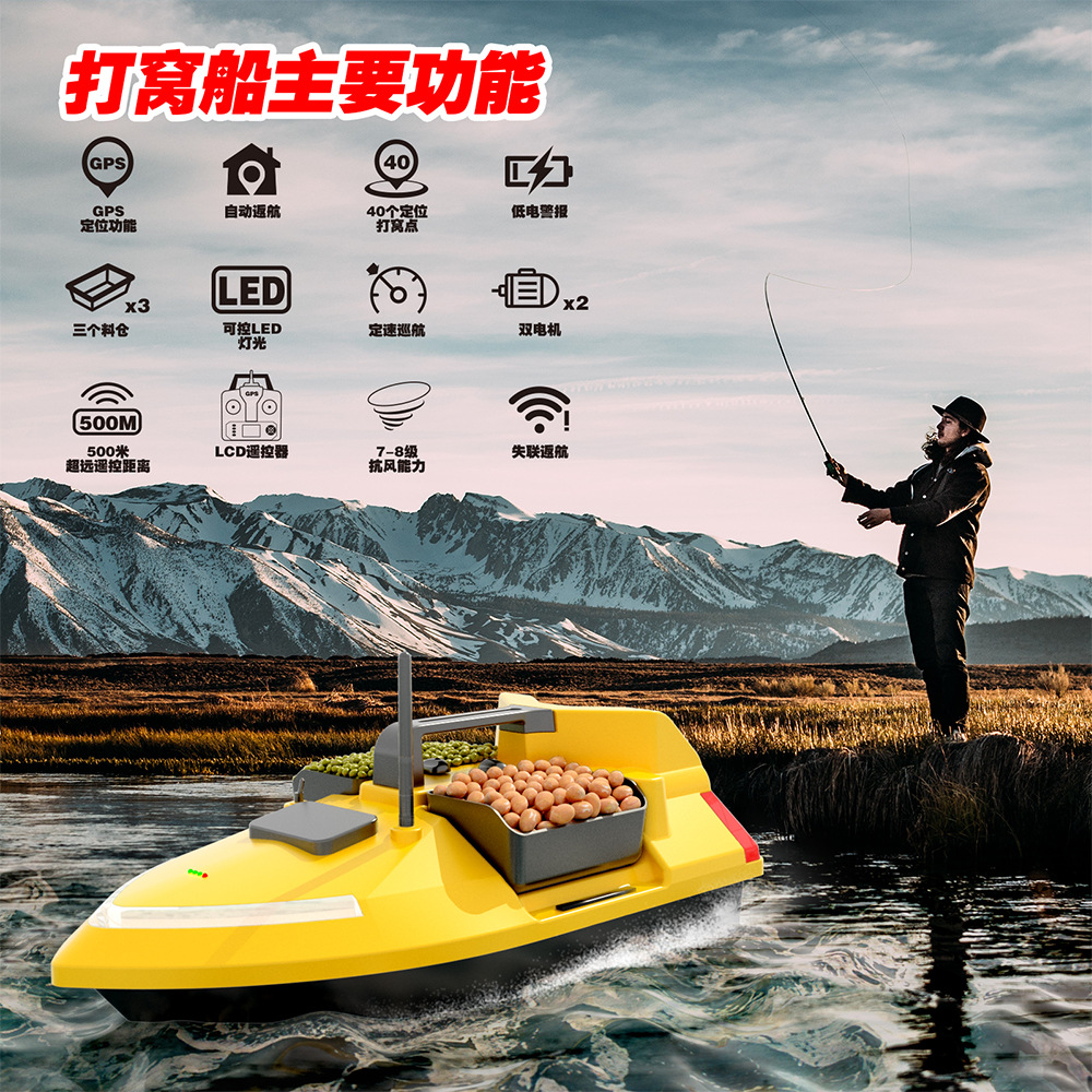 Perahu Pancing SanCang GPS Lampu Malam 500m Pancing Pintar dengan Pengiriman Umpan RC Peralatan Pancing Perahu Tahan Air dengan Remote Control