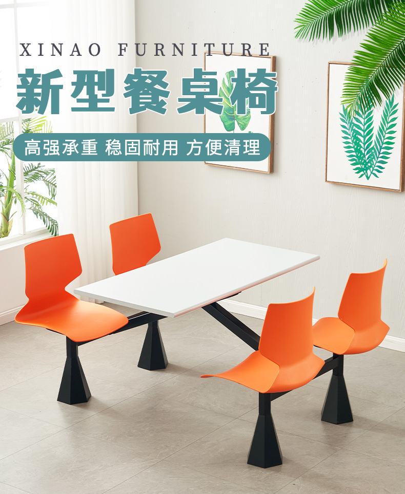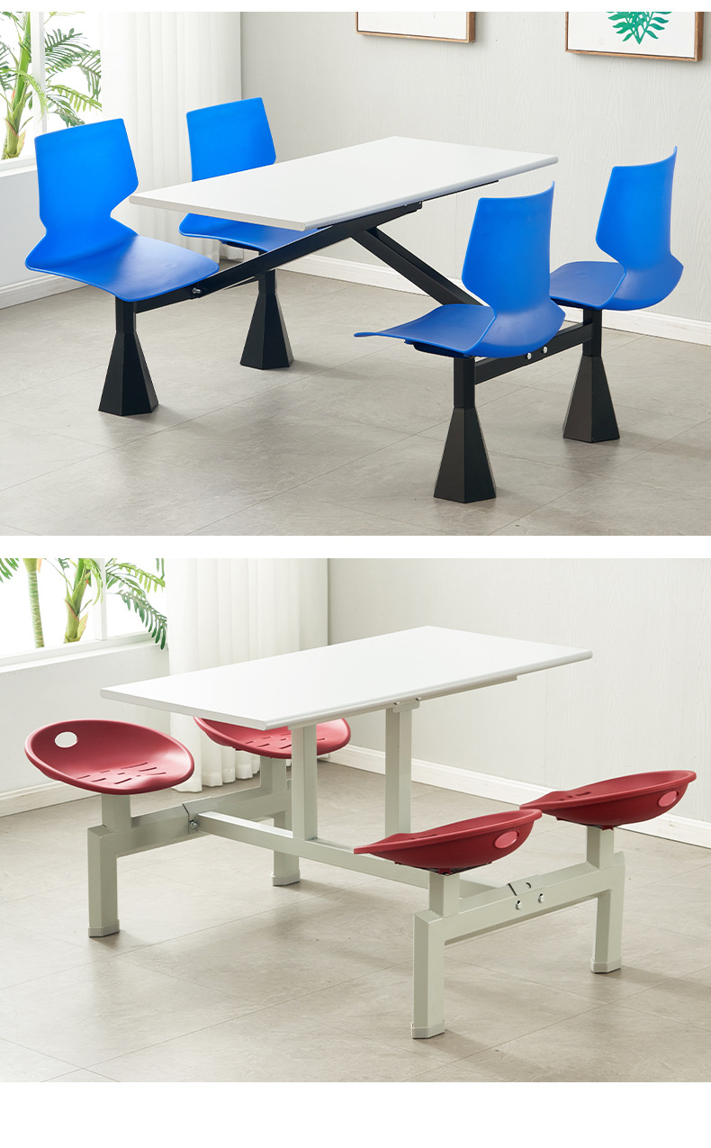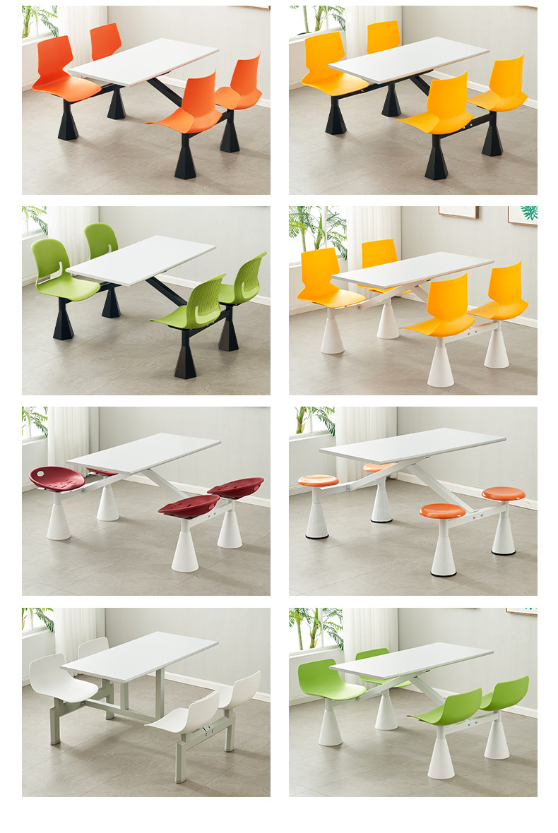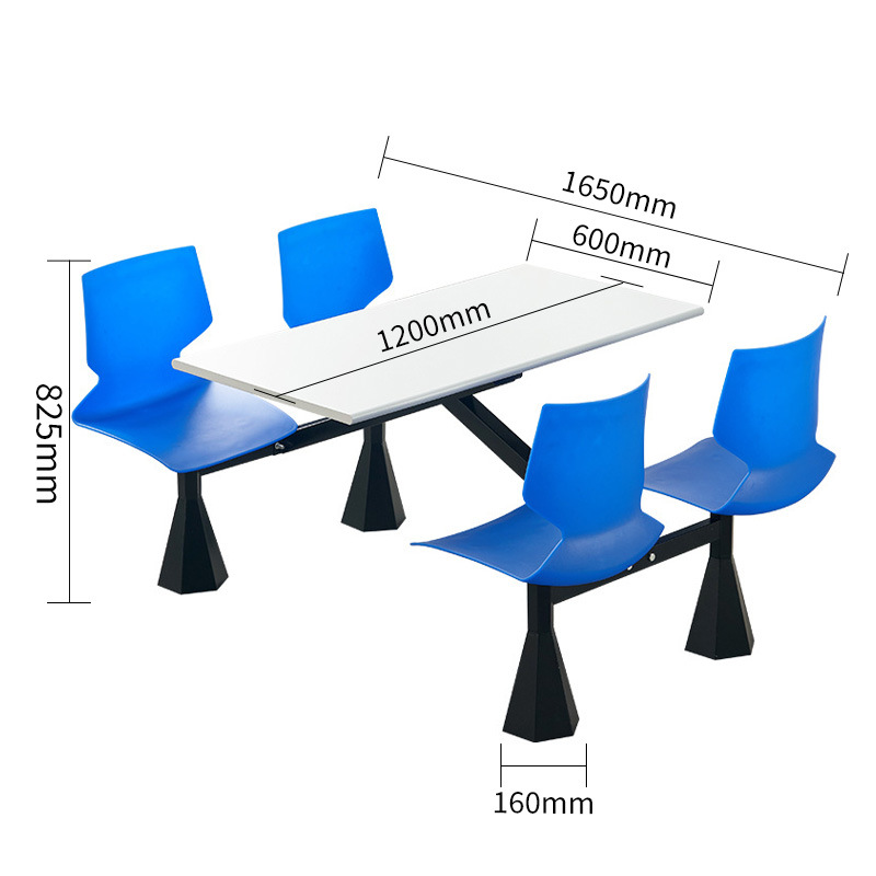 Set meja dan kursi makan cepat saji, area makan staf kantin sekolah, meja makan restoran empat kursi, modern dan sederhana.