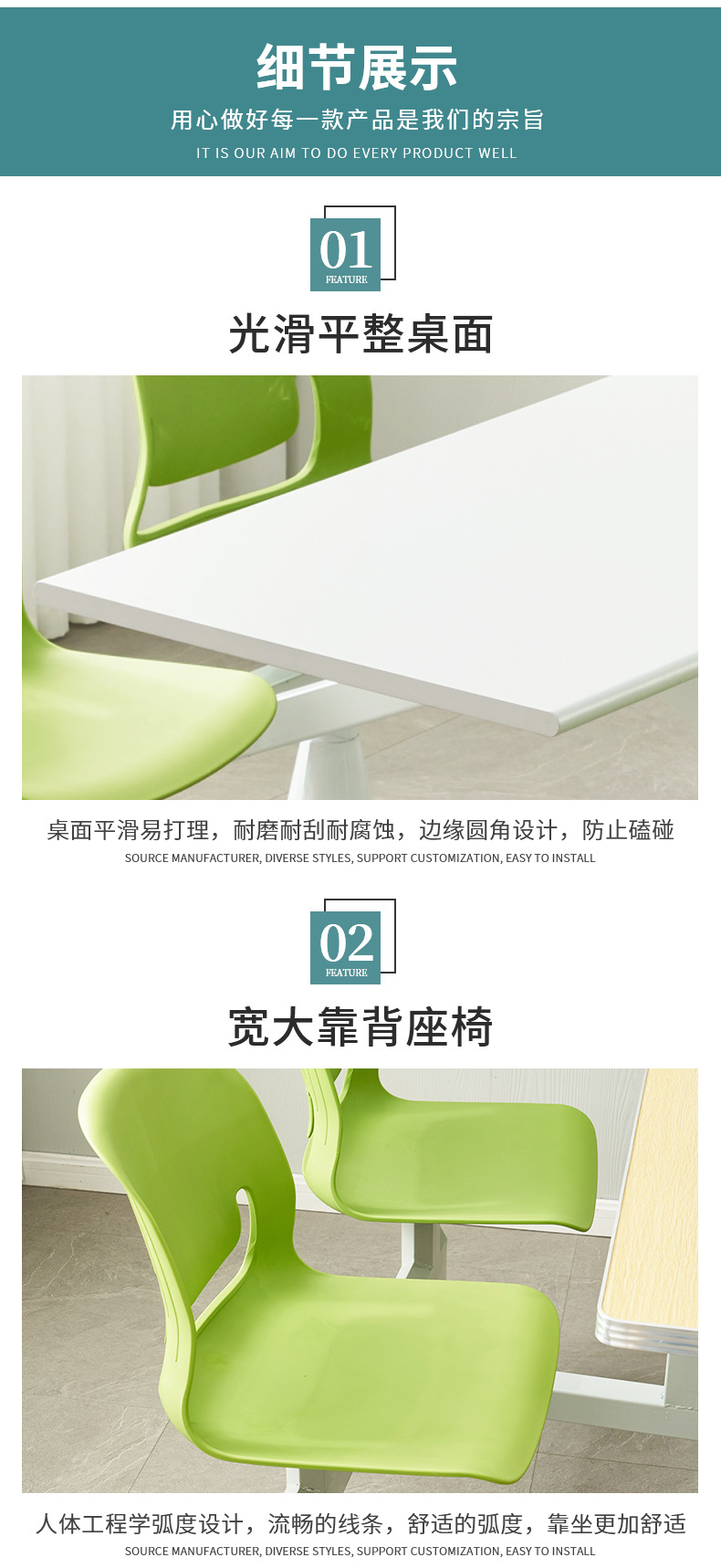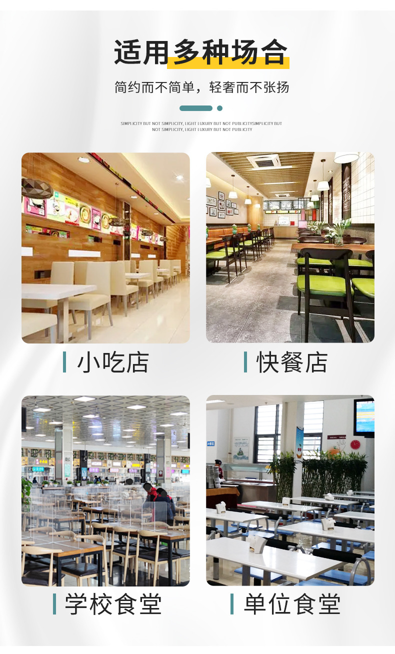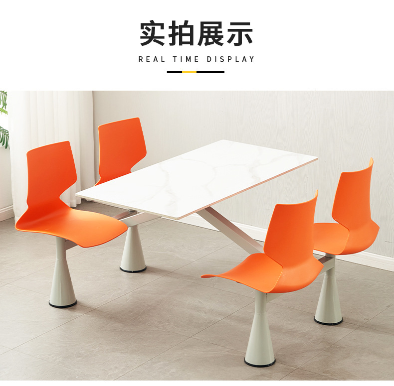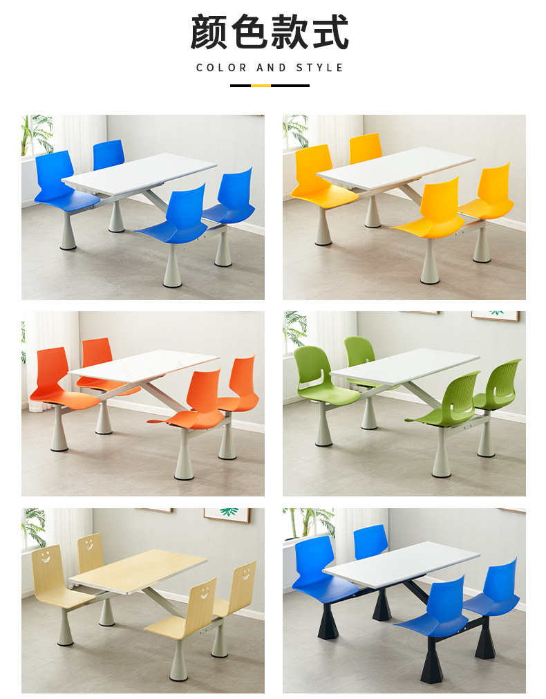Set meja dan kursi makan cepat saji, area makan staf kantin sekolah, meja makan restoran empat kursi, modern dan sederhana.