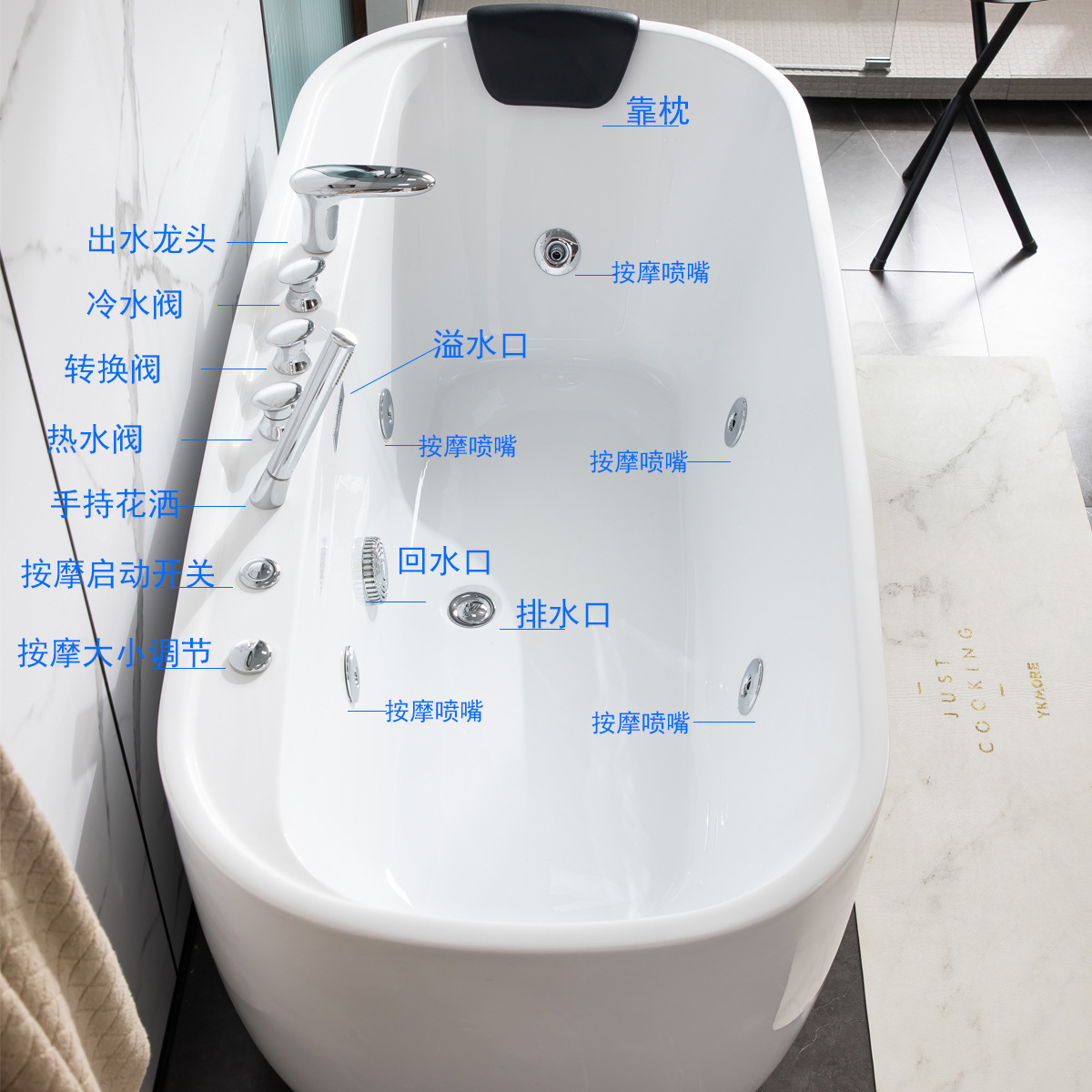 Bak mandi selancar akrilik, bak mandi terintegrasi tanpa kelim Eropa untuk rumah apartemen kecil Hotel B & B